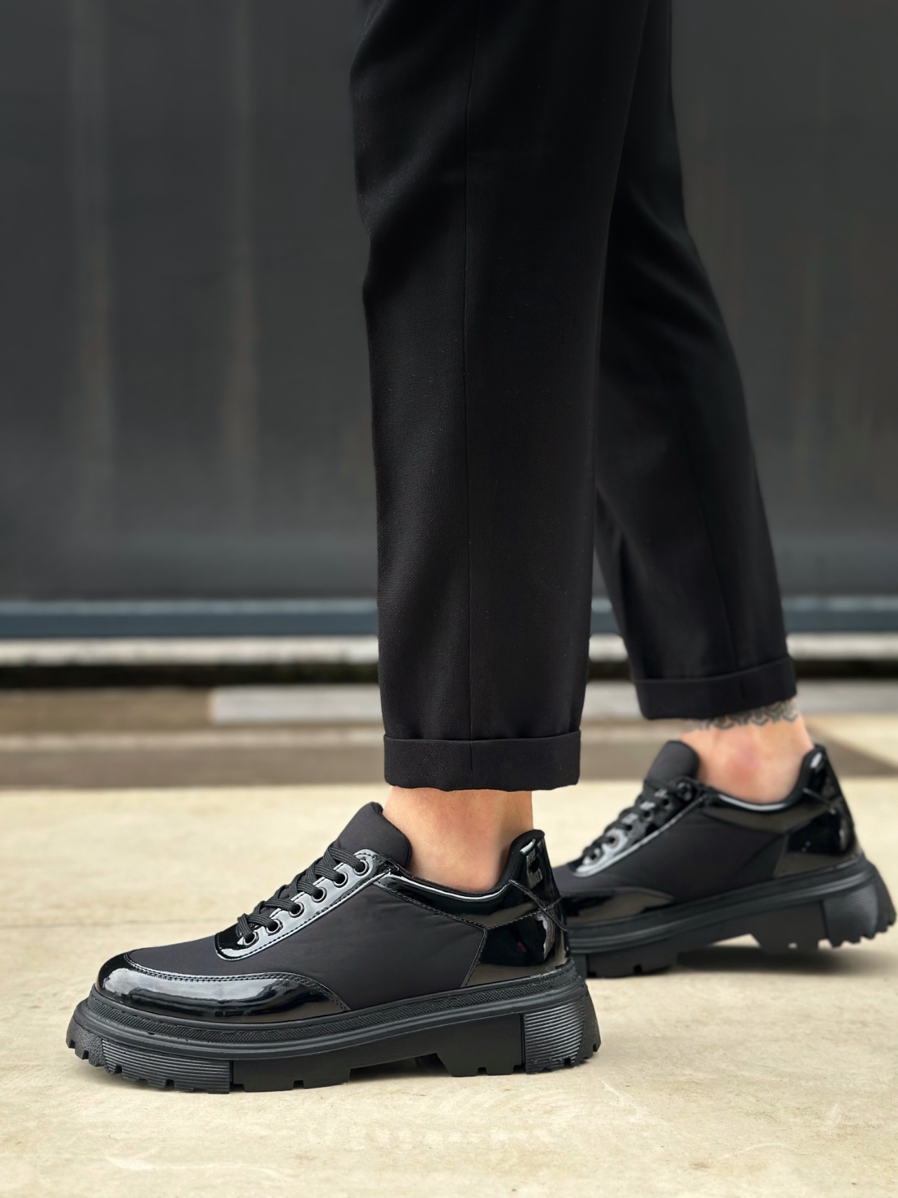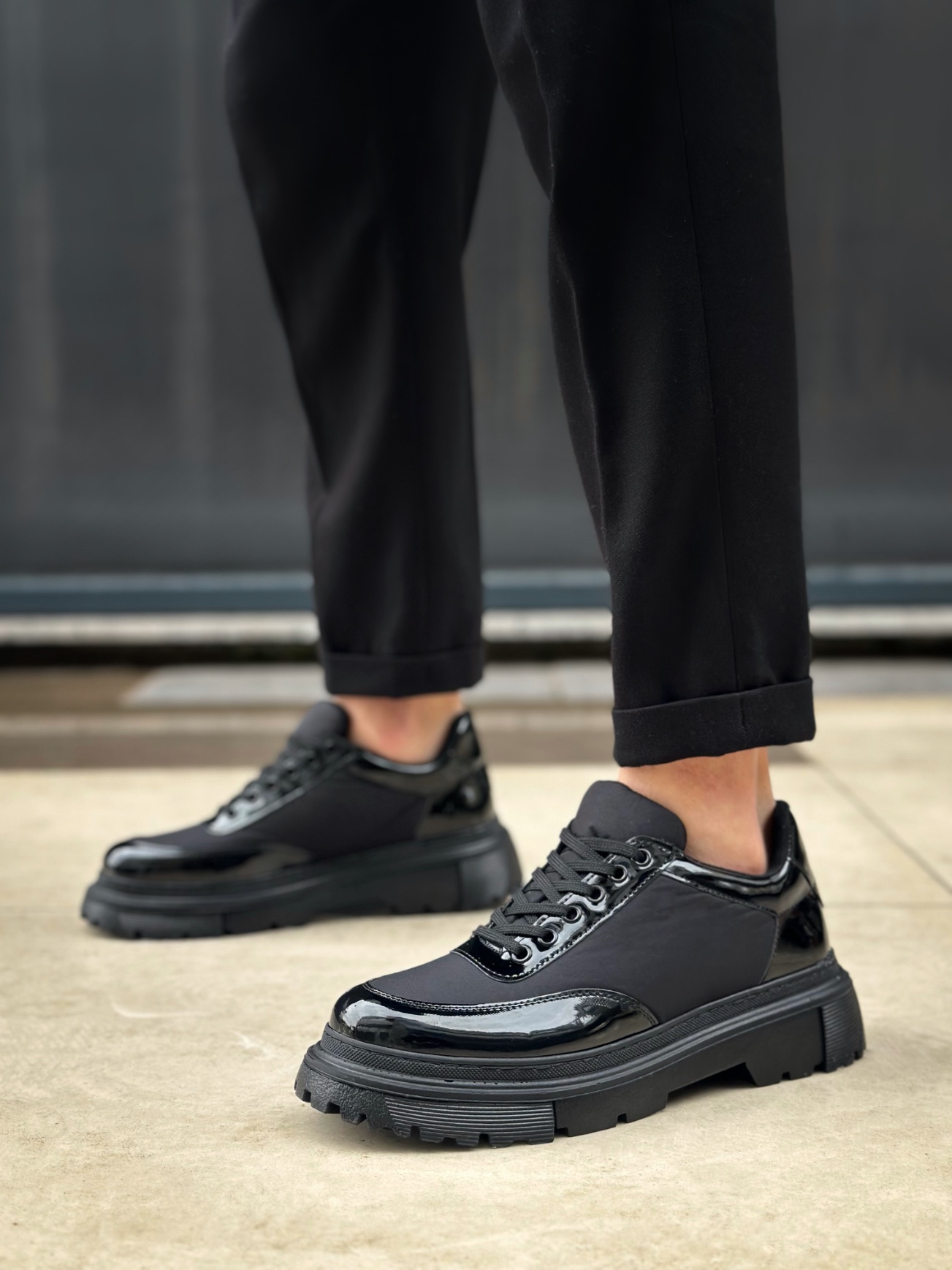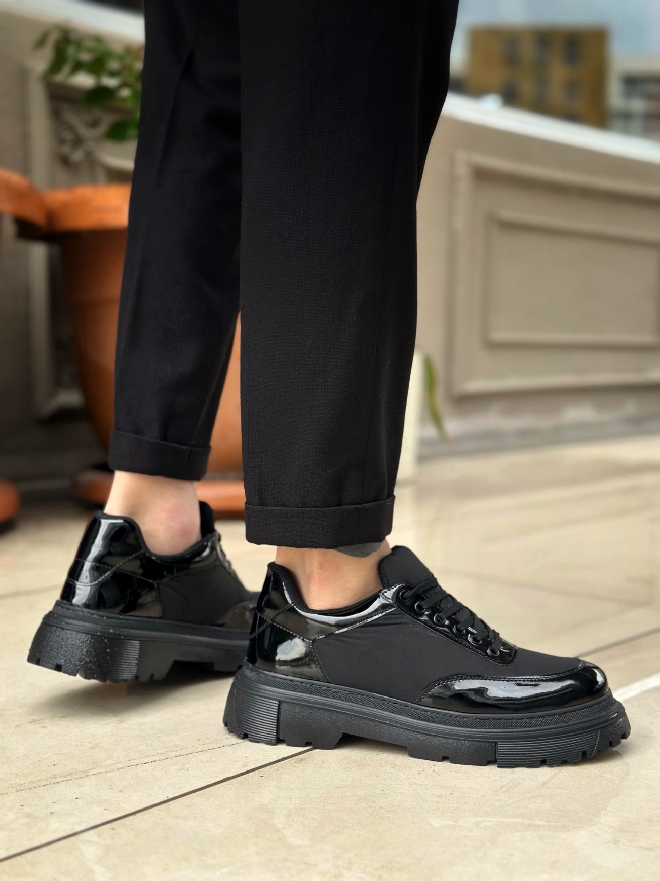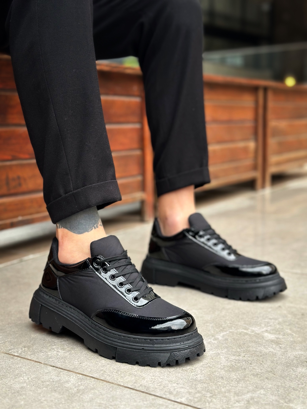 Tarz Erkek Ayakkabı Klasik Ayakkabı Tugerdi Siyah Rugan Bağcıklı Paraşüt Detaylı Yüksek Hafif Taban Tarz Erkek Ayakkabı TGE230393