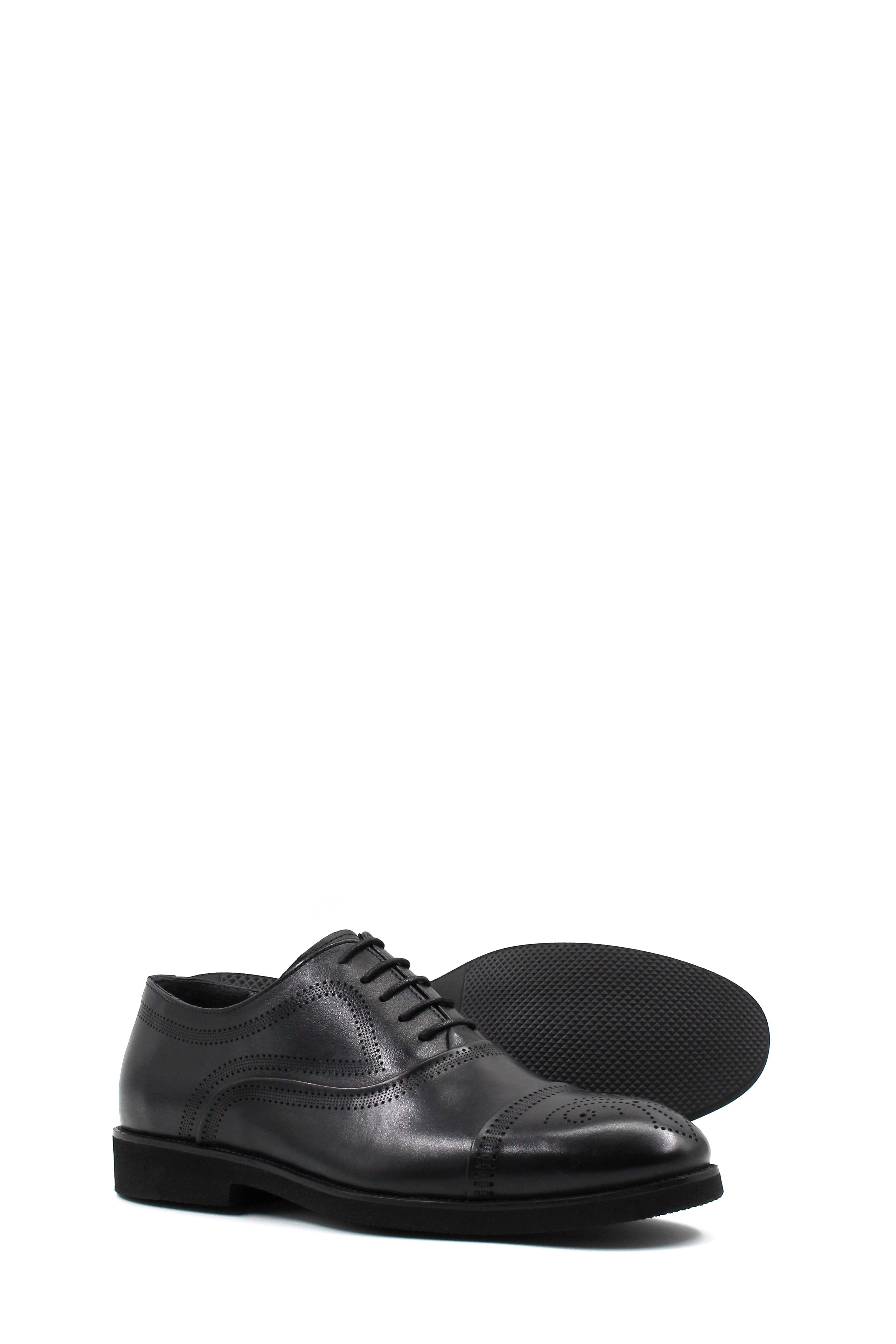 Erkek Tugerdi Siyah Hakiki Deri Bağcıklı Eva Taban Erkek Klasik Ayakkabı TG0974113120125631