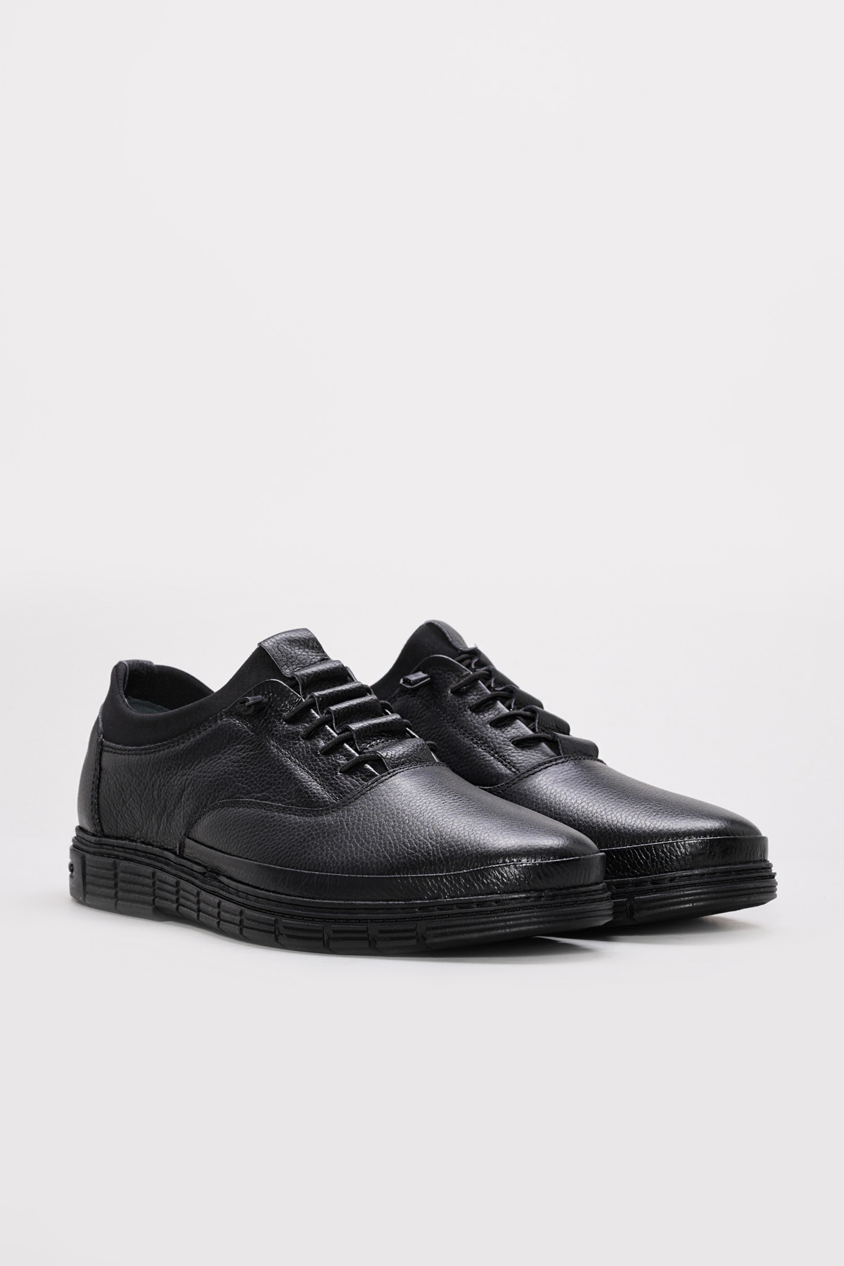 Tugerdi Siyah Hakiki Deri Bağcıklı Termo Taban Günlük Erkek Ayakkabı TG091611312513