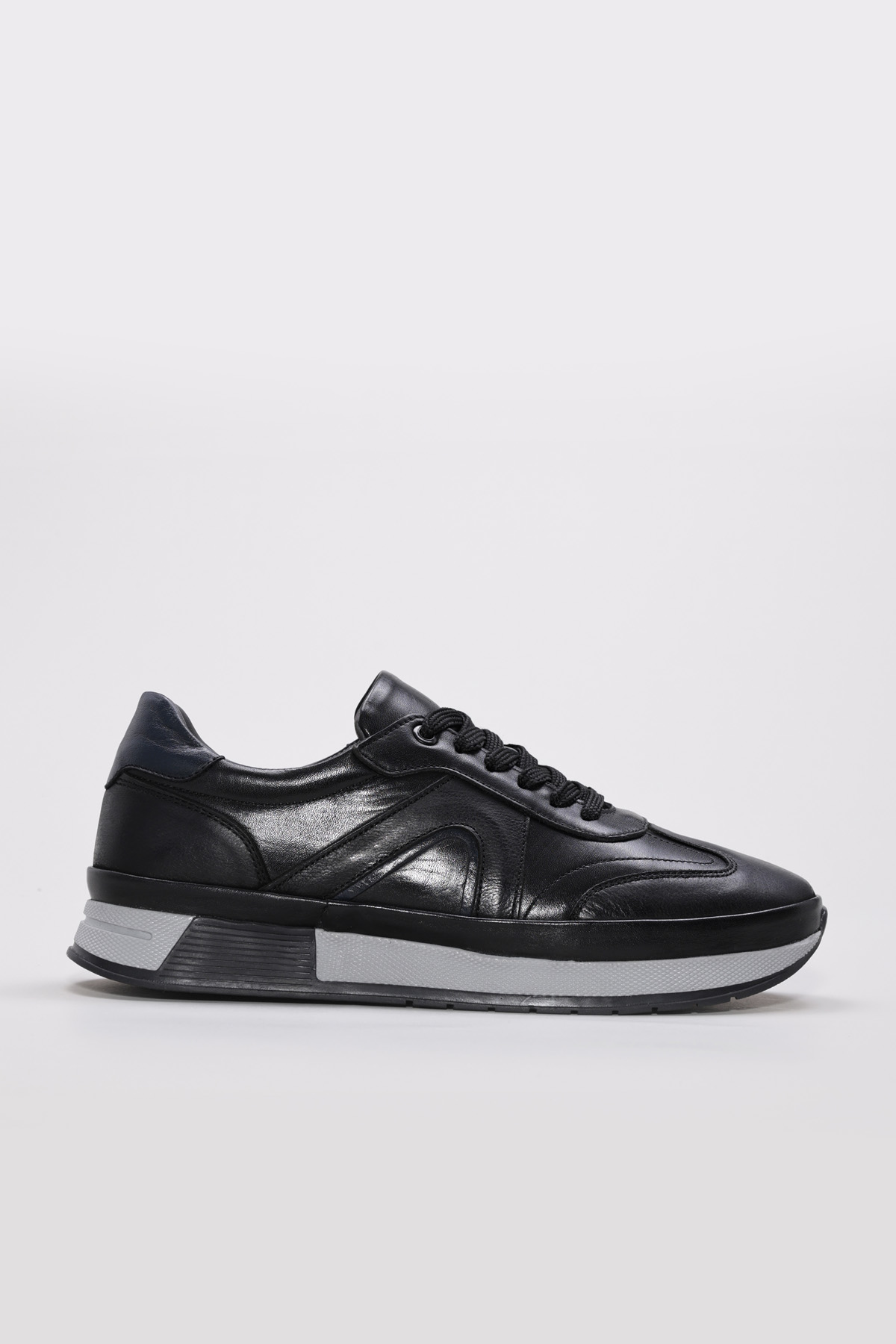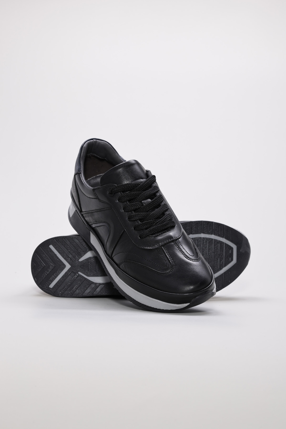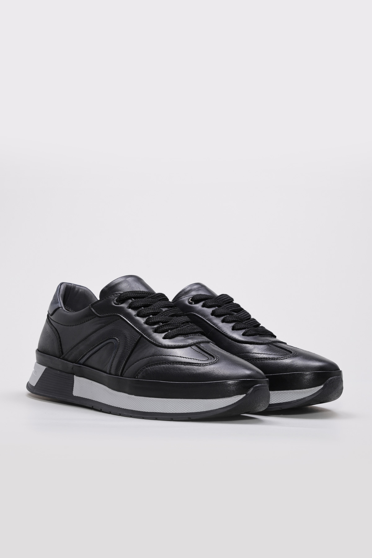 Tugerdi Siyah İçi Dışı Hakiki Deri Termo Taban Bağcıklı Erkek Sneaker Ayakkabı TG092451311427