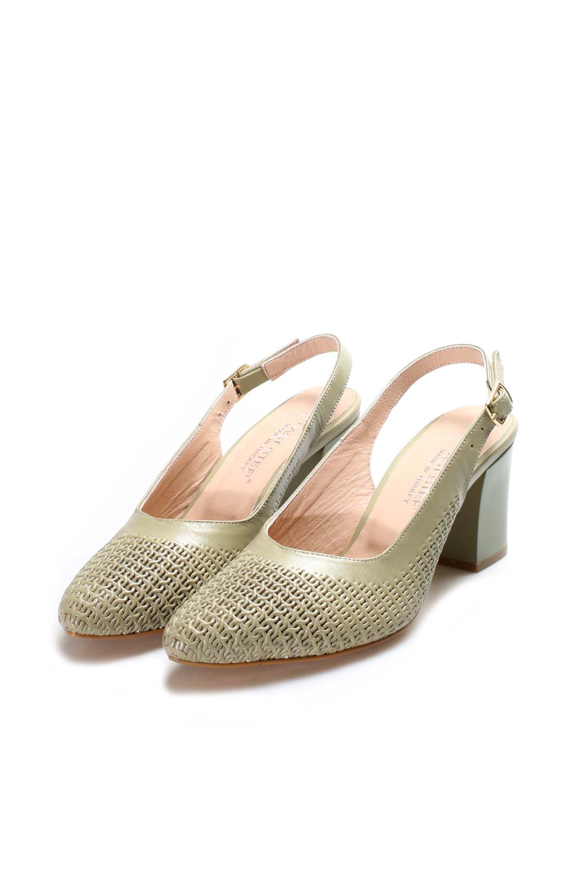 Topuklu Ayakkabı Tugerdi Hakiki Deri Avakado Jurdan Taban Klasik Kalın Topuk Kadın Ayakkabı TG09064261665