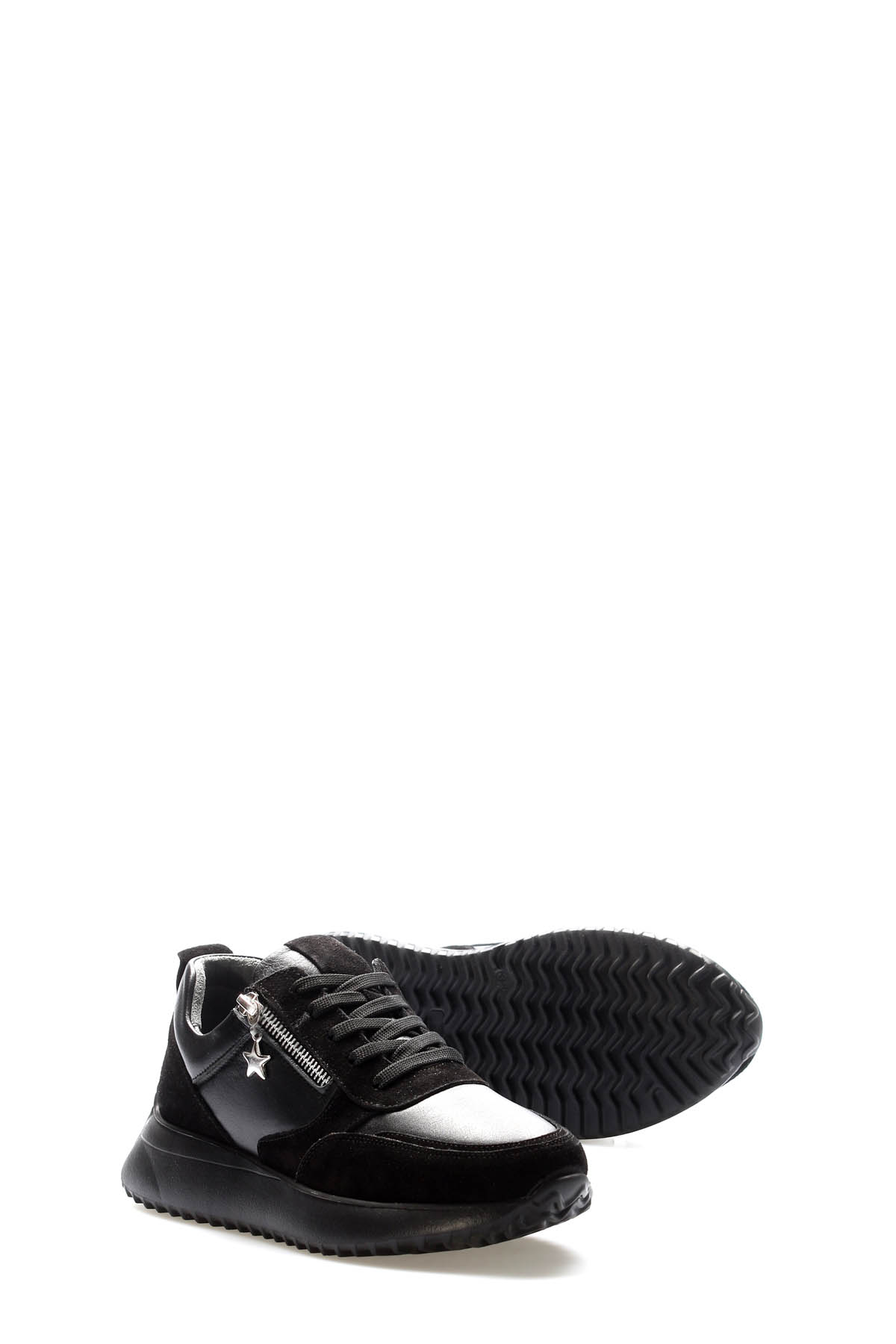 Kadın Günlük Ayakkabı Tugerdi Siyah Süet İçi Dışı Hakiki Deri Bağcıklı Hafif Taban Kadın Casual Ayakkabı TG091362619453