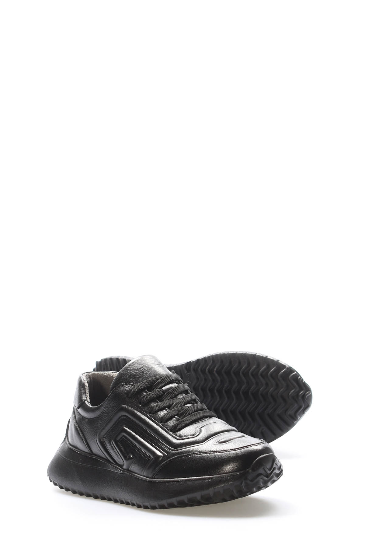 • Tugerdi Siyah Hakiki Deri Bağcıklı Hafif Siyah Taban Kadın Casual Ayakkabı TG09136261917