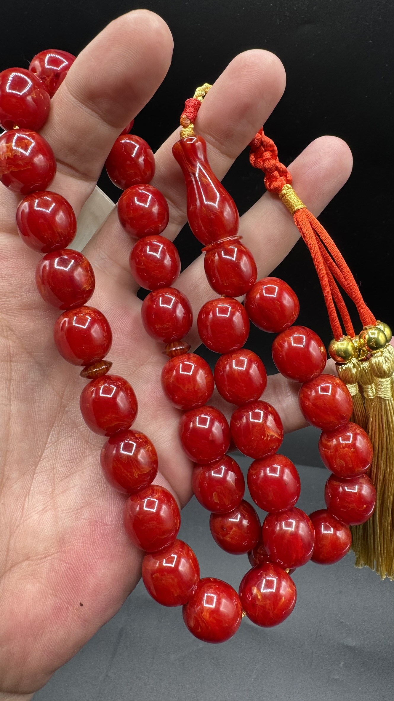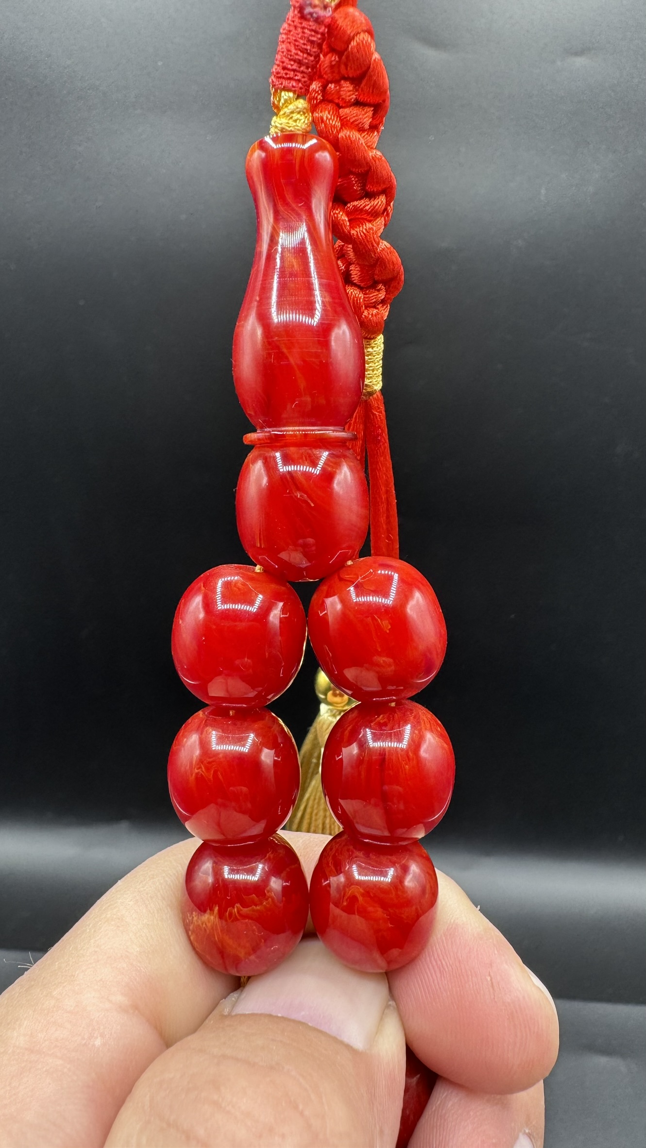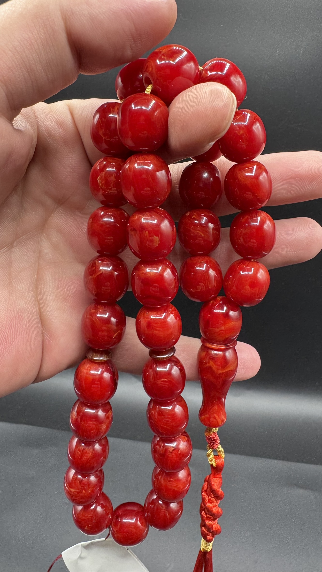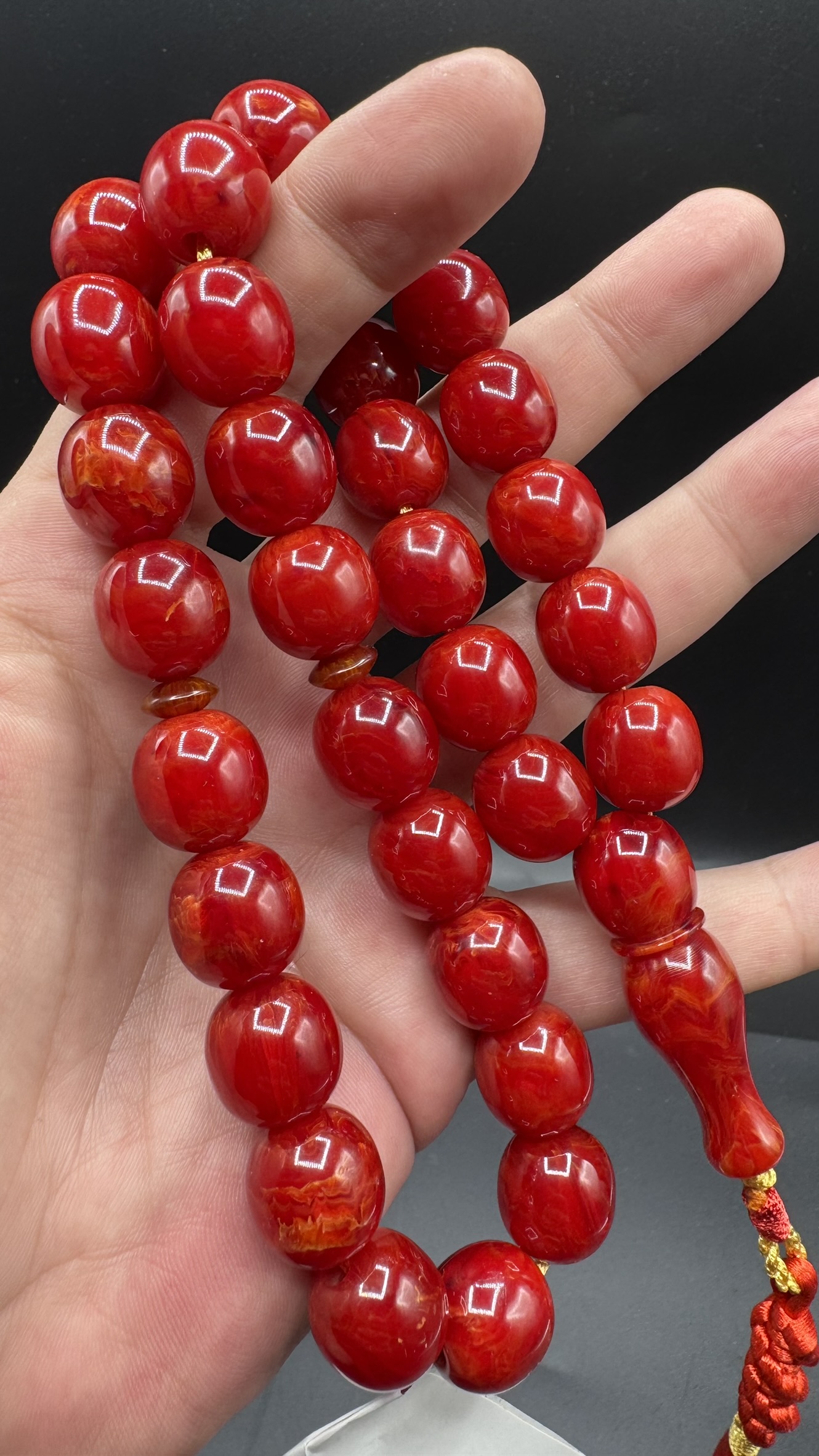Tesbih Tugerdi Kıvırcık Hareli Koleksiyon Kırmızı 90 Gr Faturan Sıkma Kehribar Tespih AHTES2524