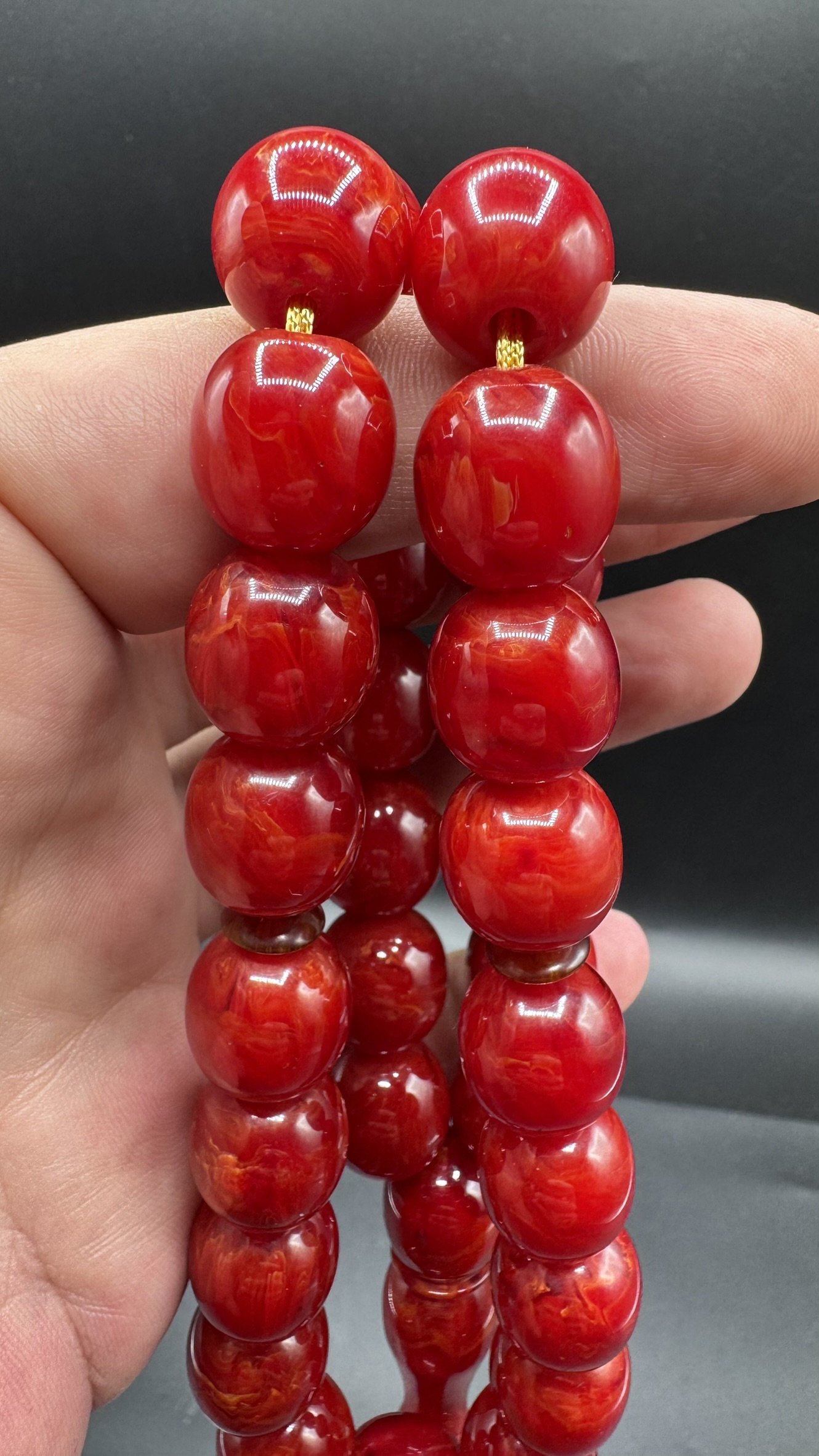 Tugerdi Kıvırcık Hareli Koleksiyon Kırmızı 90 Gr Faturan Sıkma Kehribar Tespih AHTES2524