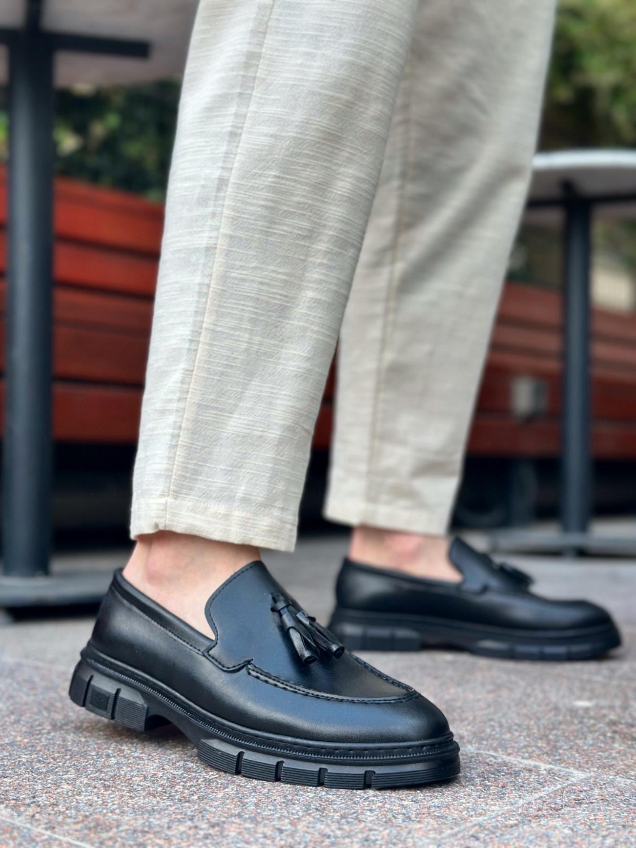 • Tugerdi Siyah Püsküllü Hafif Siyah Taban Klasik Casual Erkek Ayakkabı TGE230390