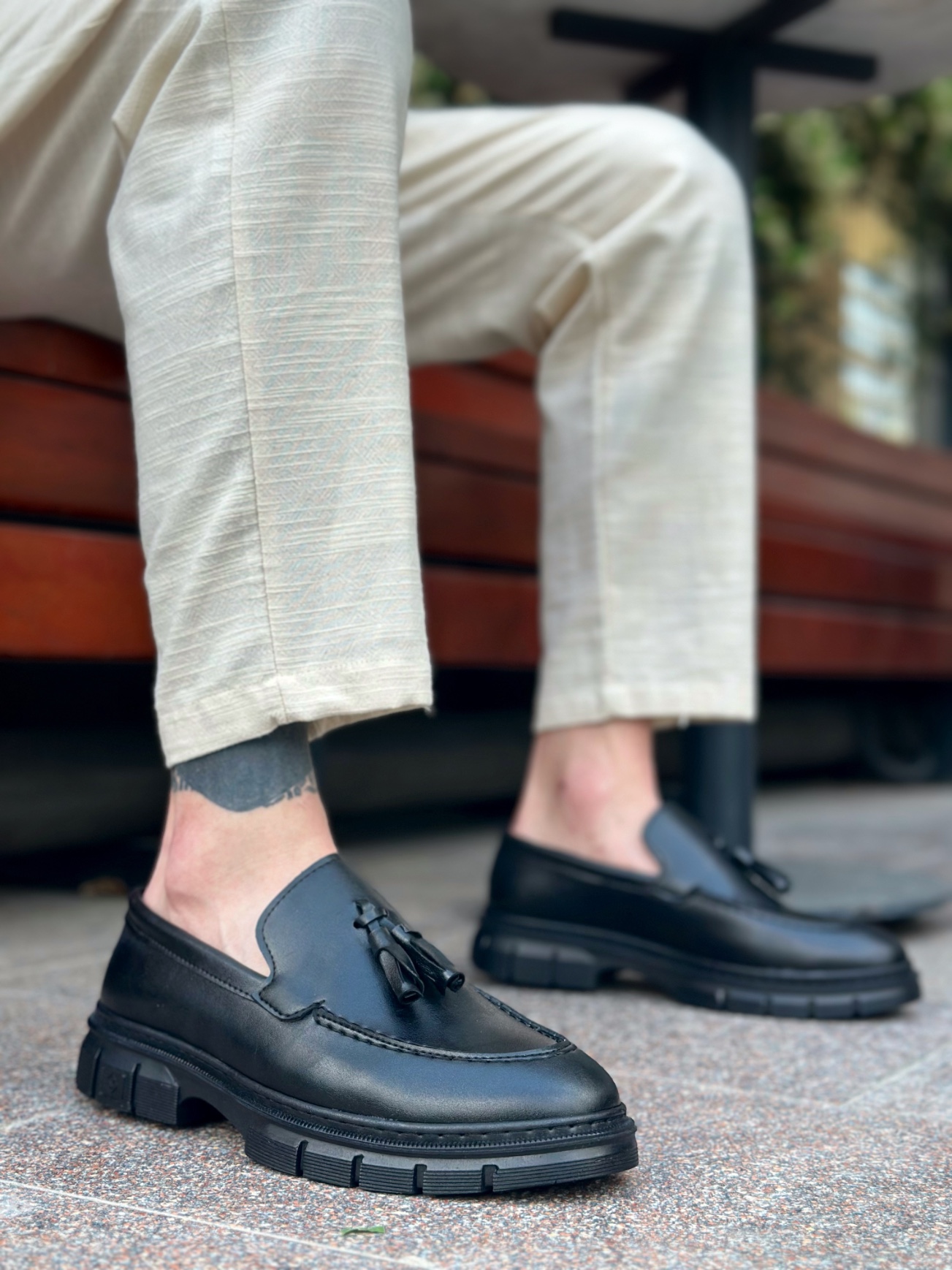 Tugerdi Siyah Püsküllü Hafif Siyah Taban Klasik Casual Erkek Ayakkabı TGE230390
