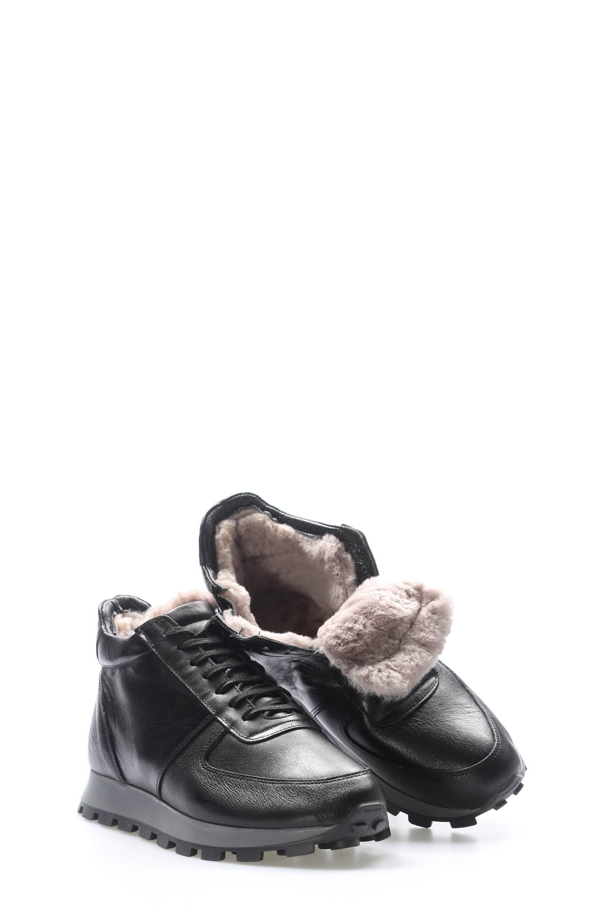 Tugerdi Siyah Hakiki Deri İçi Kürklü Termo Taban Bağcıklı Fermuarlı Erkek Spor Bot TG09154117117501