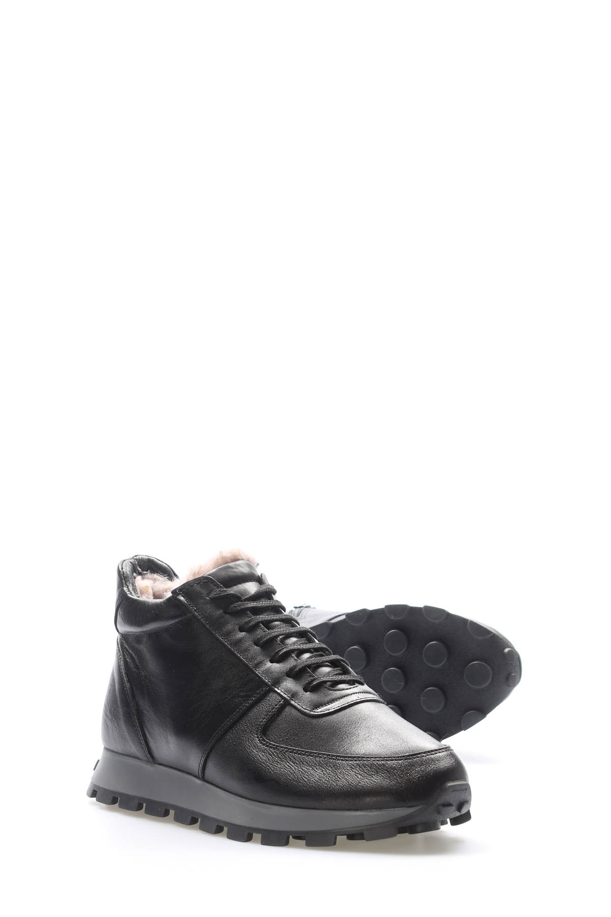 • Tugerdi Siyah Hakiki Deri İçi Kürklü Bağcıklı Fermuarlı Termo Taban Erkek Spor Bot TG091541113117501