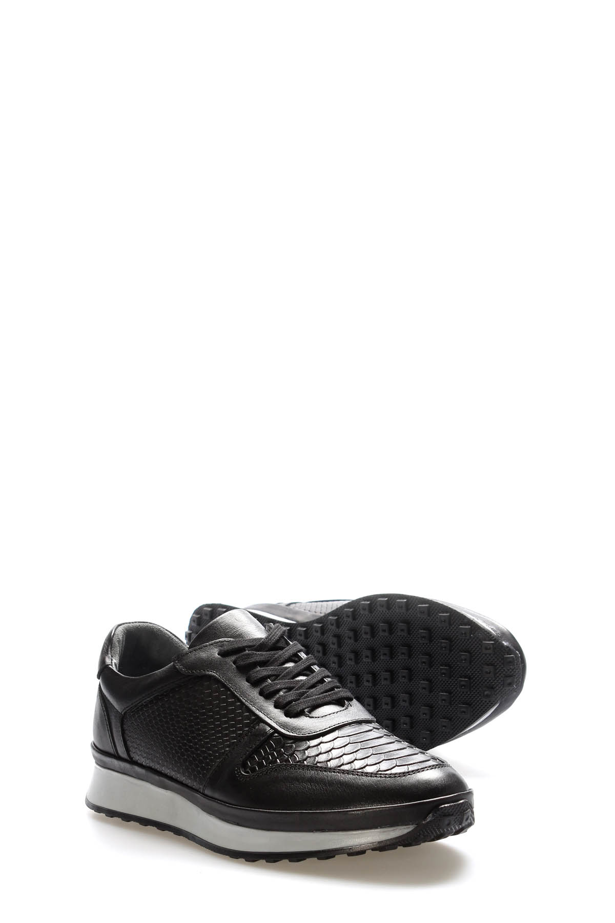 Tugerdi Siyah İçi Dışı Hakiki Deri Bağcıklı Termo Taban Erkek Sneaker Ayakkabı TG0995113165302011223