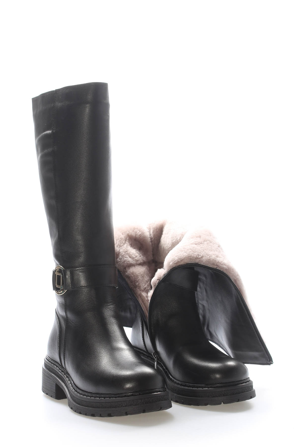 • Tugerdi Siyah İçi Kürklü Hakiki Deri Fermuarlı Termo Taban Kaliteli Kadın Çizme TG09257112611042