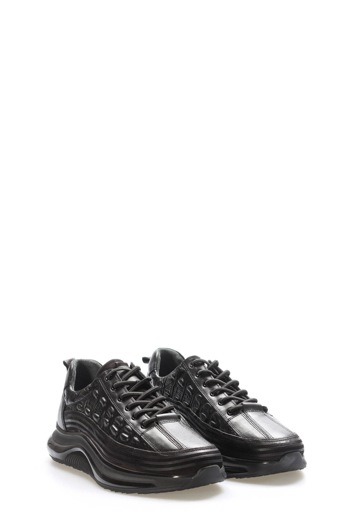 • Tugerdi Siyah İçi Dışı Hakiki Deri Hafif Taban Bağcıklı Erkek Spor Ayakkabı TG091261311414