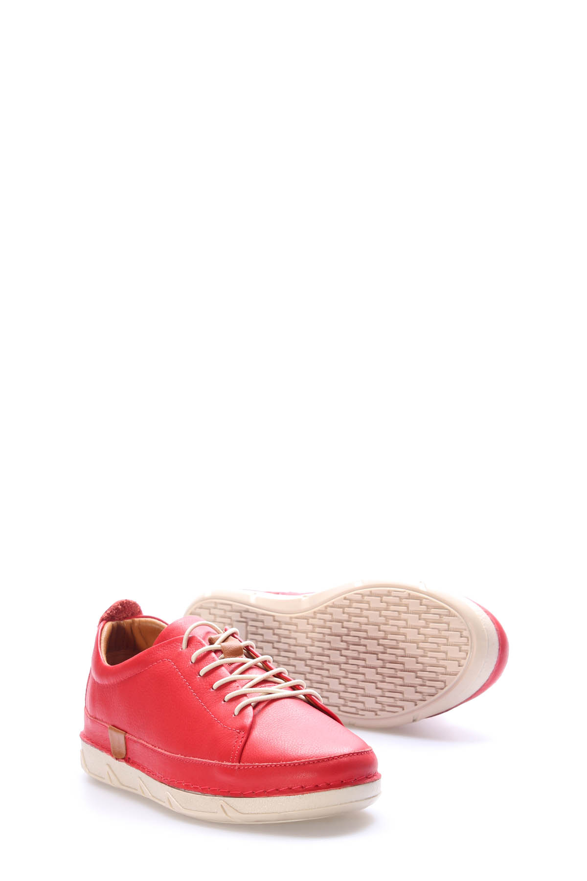• Tugerdi Kırmızı Hakiki Deri Bağcıklı Termo Taban Kaliteli Günlük Kadın Ayakkabı TG0916026111360