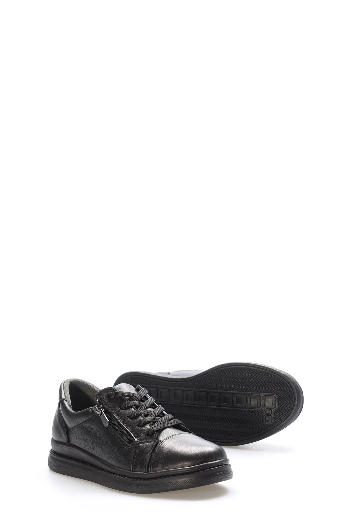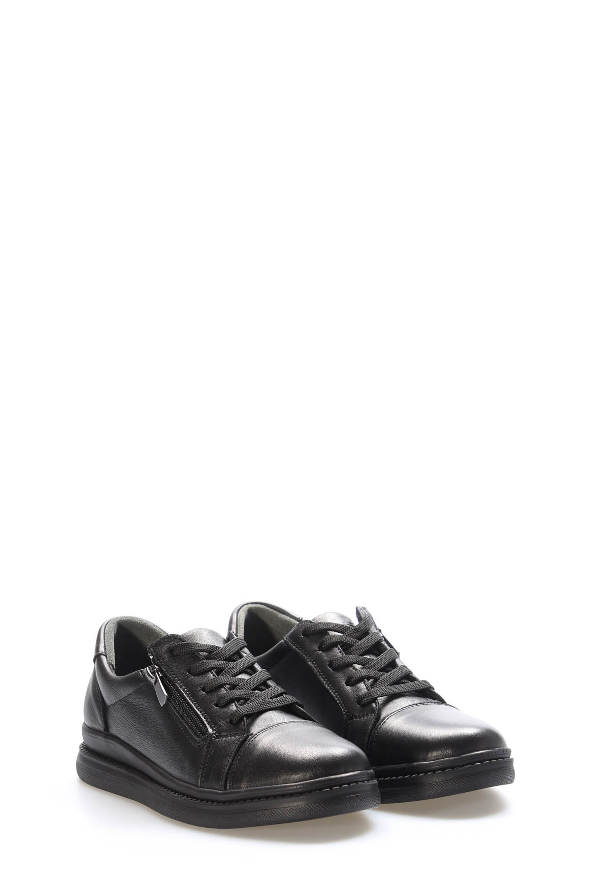 Tugerdi Siyah Fermuarlı Bağcıklı Hakiki Deri Hafif Taban Günlük Kadın Ayakkabı TG091382611540