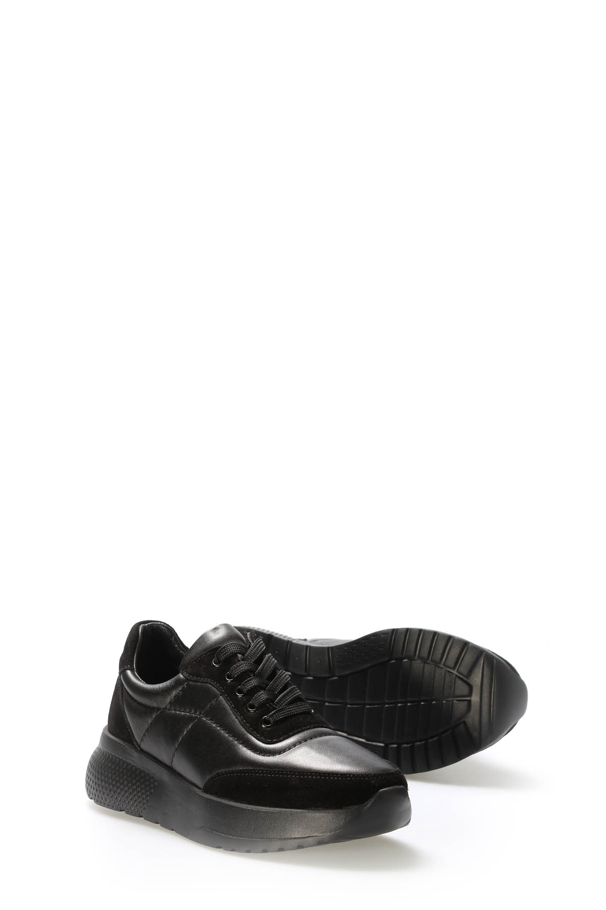 • Tugerdi Siyah Hakiki Deri Hafif Taban Bağcıklı Kadın Casual Ayakkabı TG099822611411