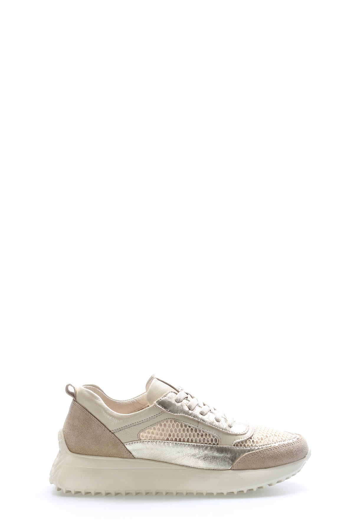 Tugerdi Bej Altın Hakiki Deri Hafif Taban Bağcıklı Kaliteli Kadın Casual Ayakkabı TG091362619441