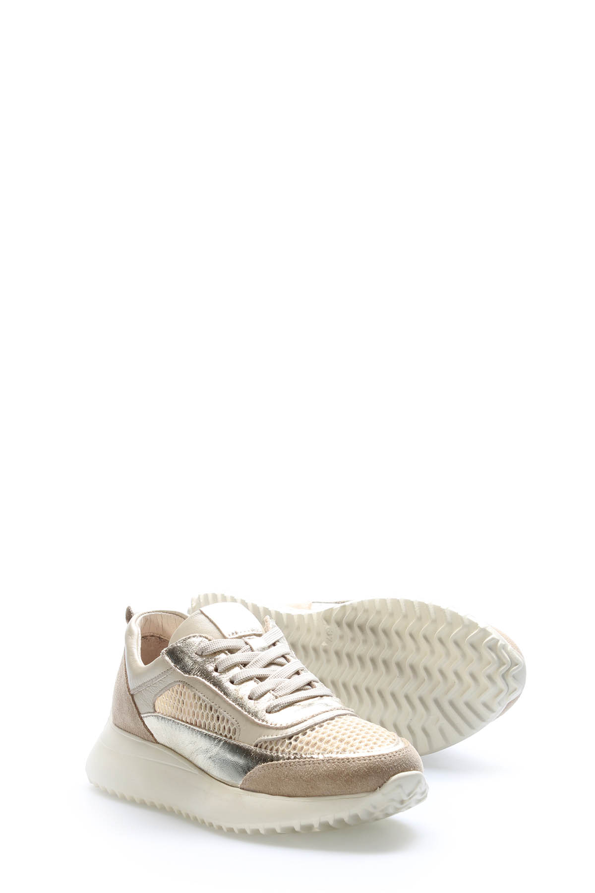 • Tugerdi Bej Altın Hakiki Deri Hafif Taban Bağcıklı Kaliteli Kadın Casual Ayakkabı TG091362619441