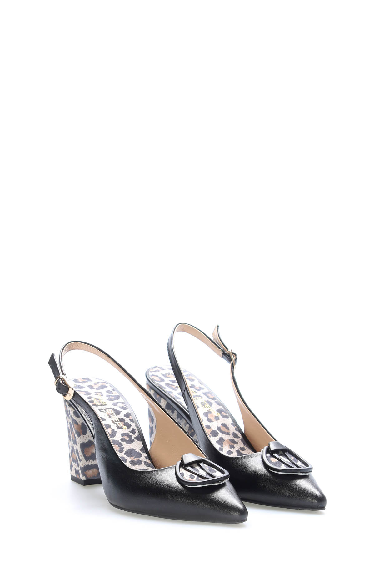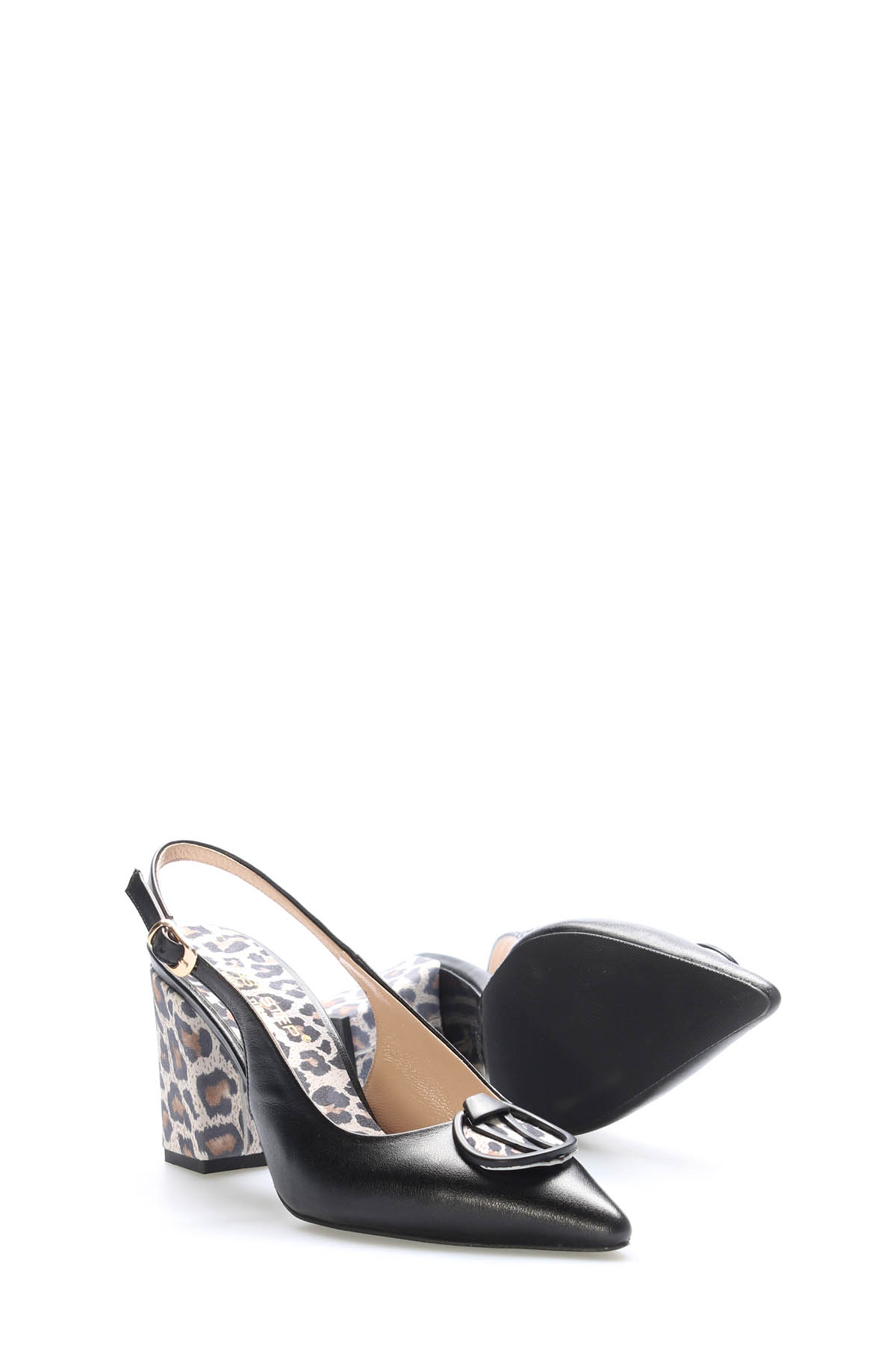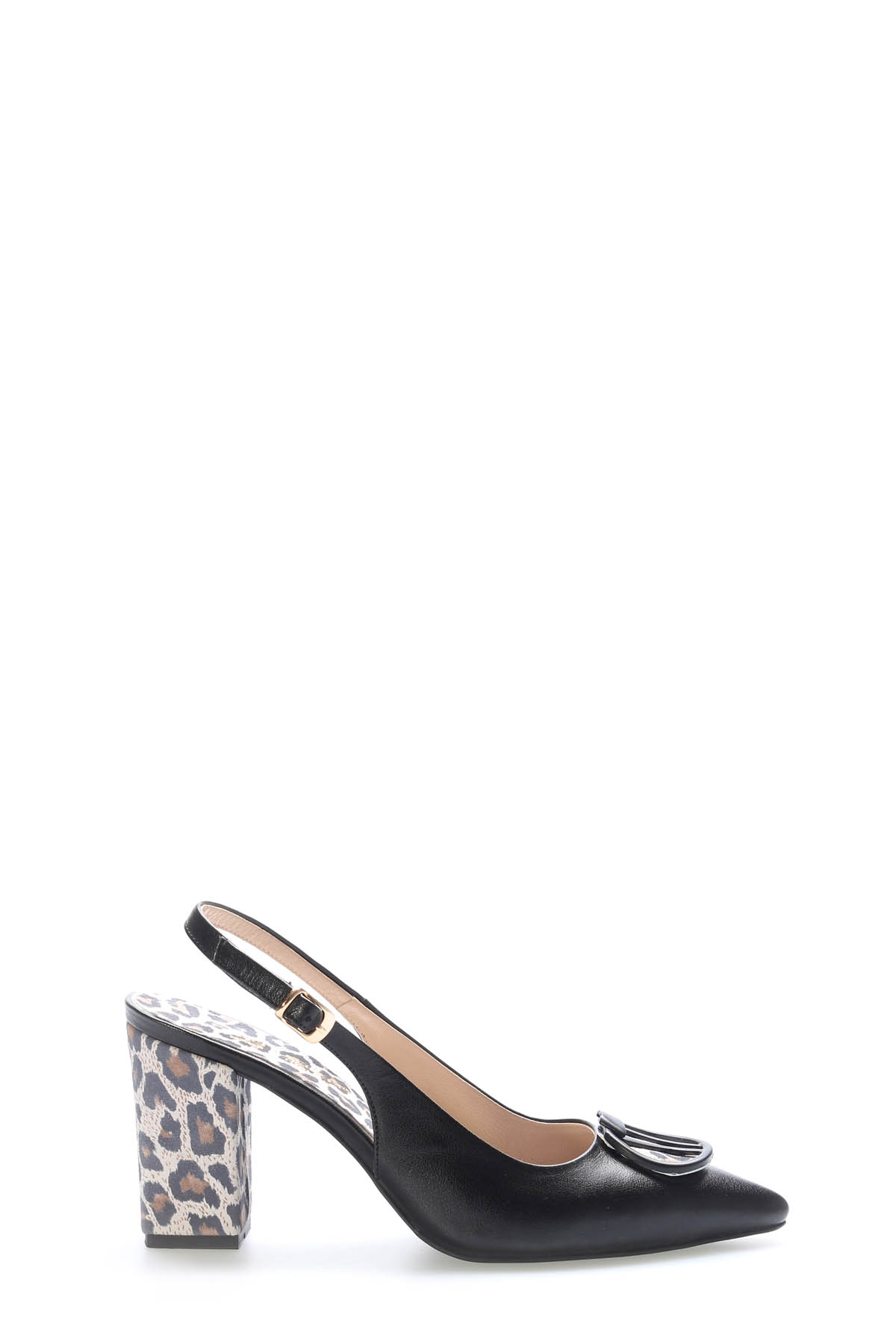 • Tugerdi Siyah Leopar Hakiki Deri Jurdan Taban Yandan Kemerli Kalın Topuklu Kadın Ayakkabı TG0921526121151