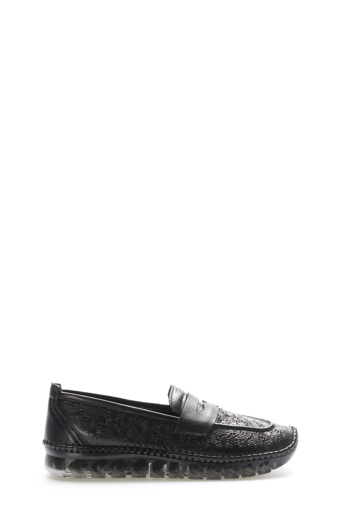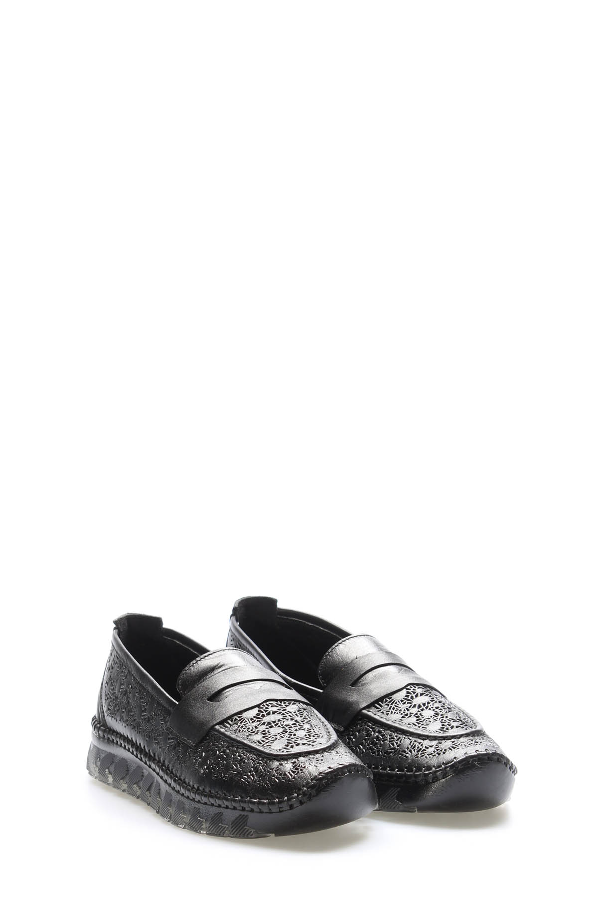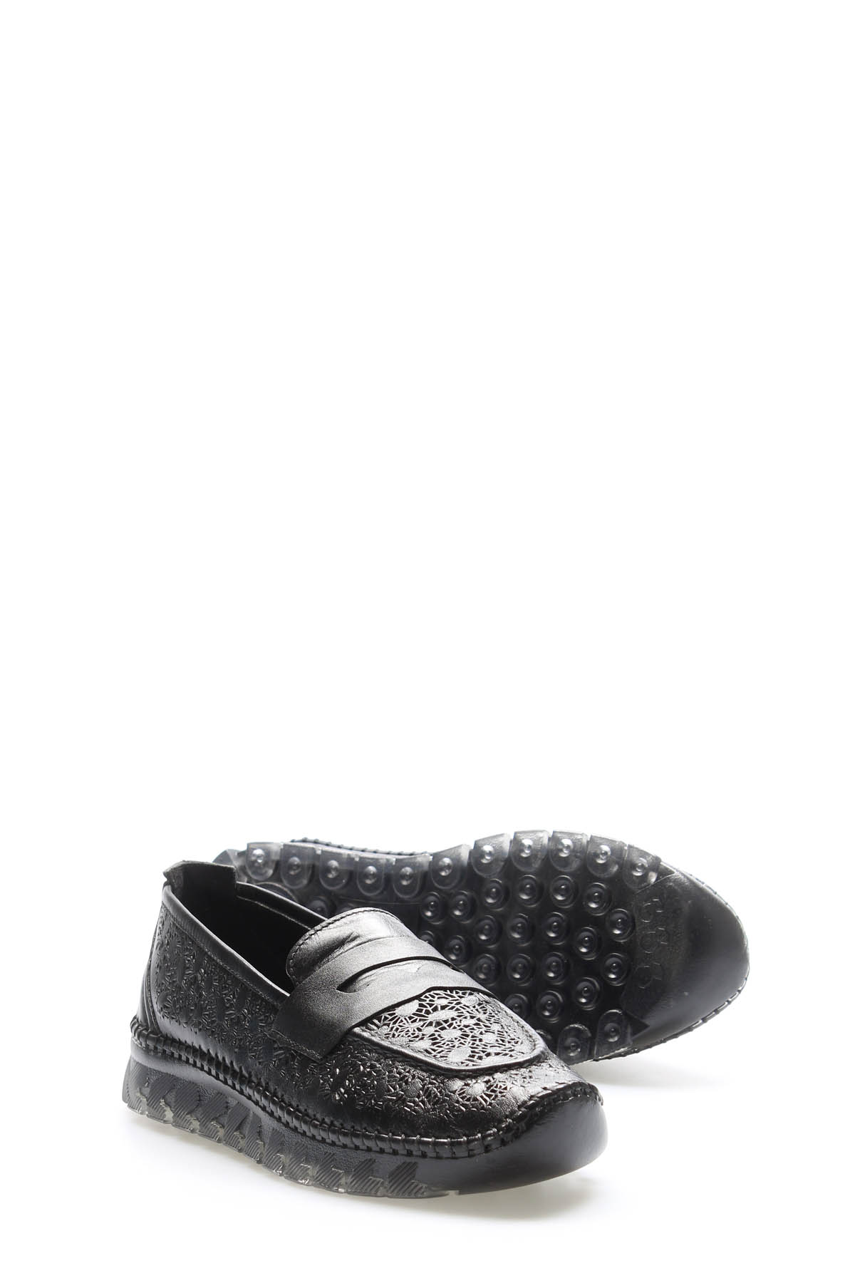 Tugerdi Siyah Hakiki Deri Kauçuk Taban Rahat Kadın Casual Ayakkabı TG096092617401221028