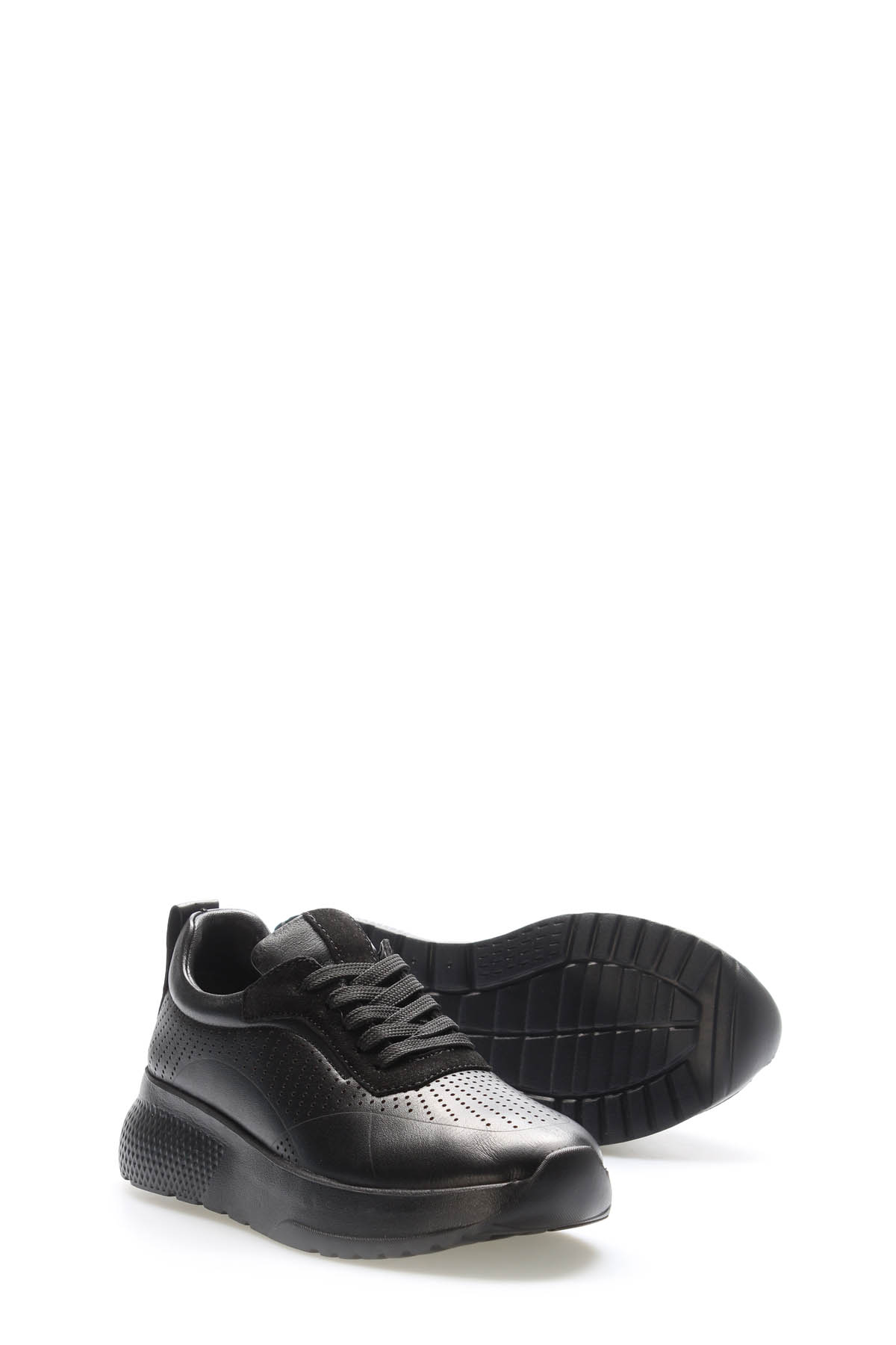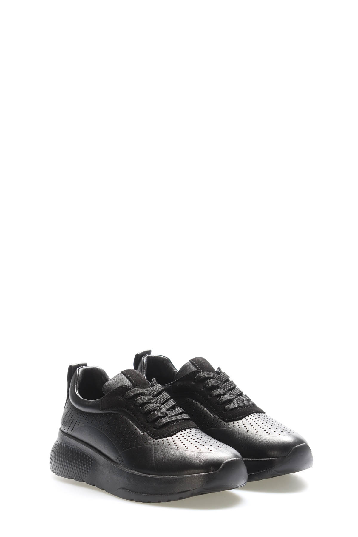 • Tugerdi Siyah Bağcıklı İçi Dışı Hakiki Deri Hafif Taban Kaliteli Kadın Casual Ayakkabı TG099822611420