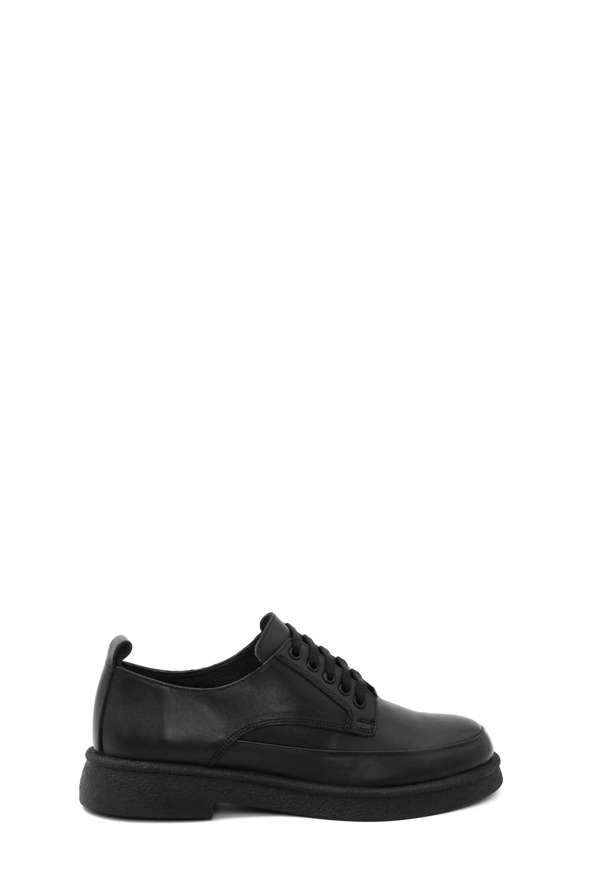 Tugerdi Siyah Hakiki Deri Bağcıklı Hafif Siyah Taban Kadın Casual Ayakkabı TG0921726121312