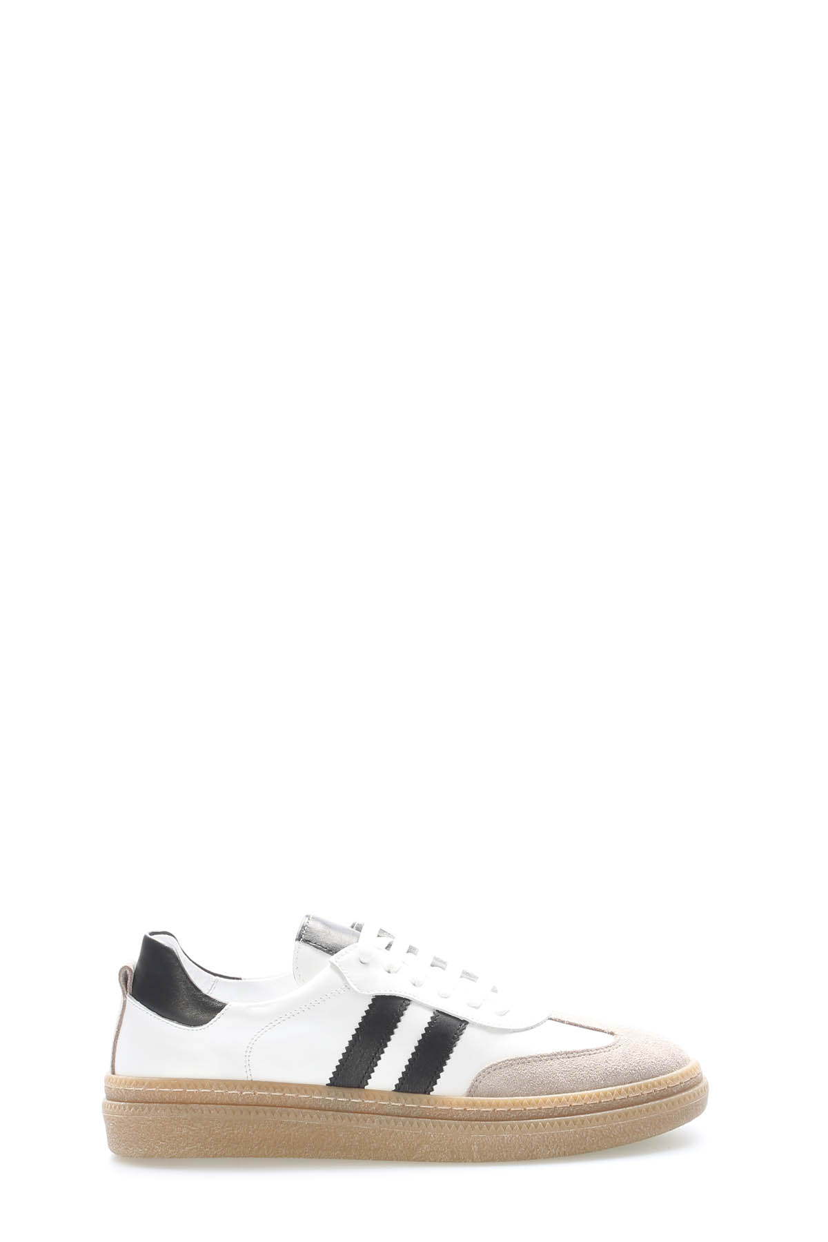 Tugerdi Beyaz Siyah Hakiki Deri Bağcıklı Hafif Taban Kadın Casual Ayakkabı TG092172611182