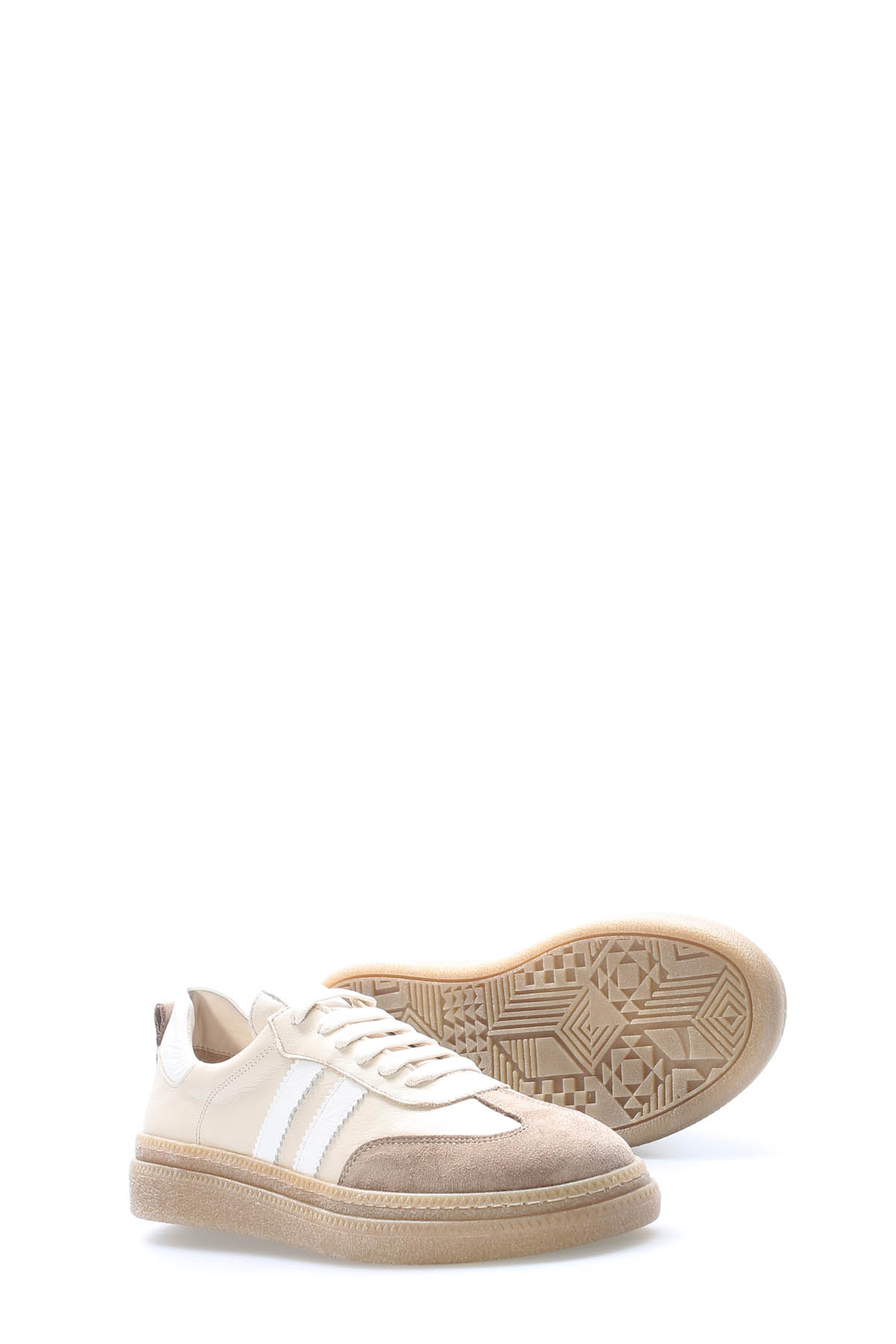 • Tugerdi Bej Beyaz Hakiki Deri Bağcıklı Hafif Taban Kadın Casual Ayakkabı TG092172611182