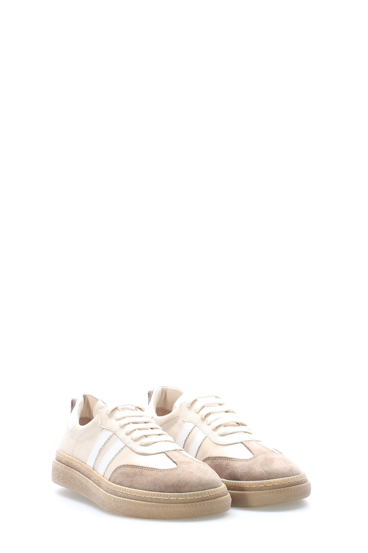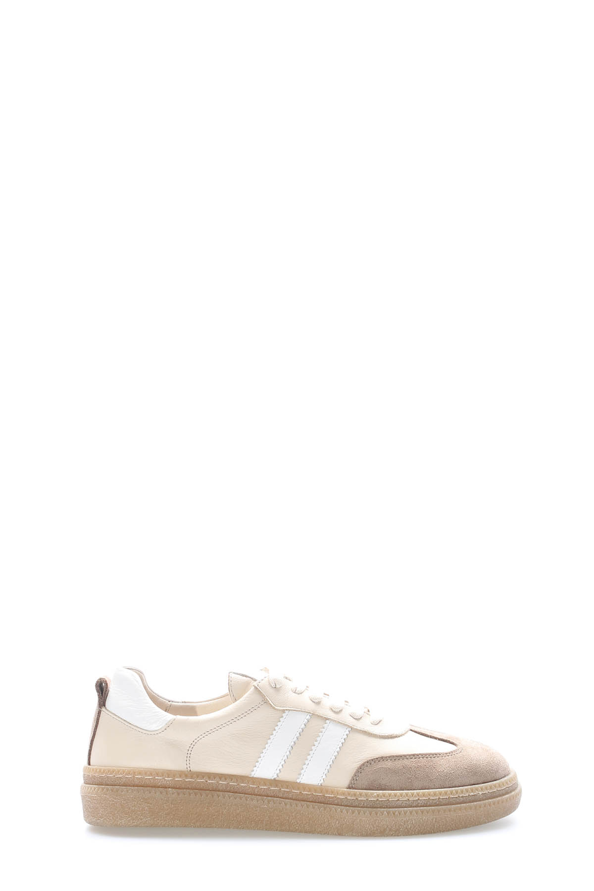 Tugerdi Bej Beyaz Hakiki Deri Bağcıklı Hafif Taban Kadın Casual Ayakkabı TG092172611182
