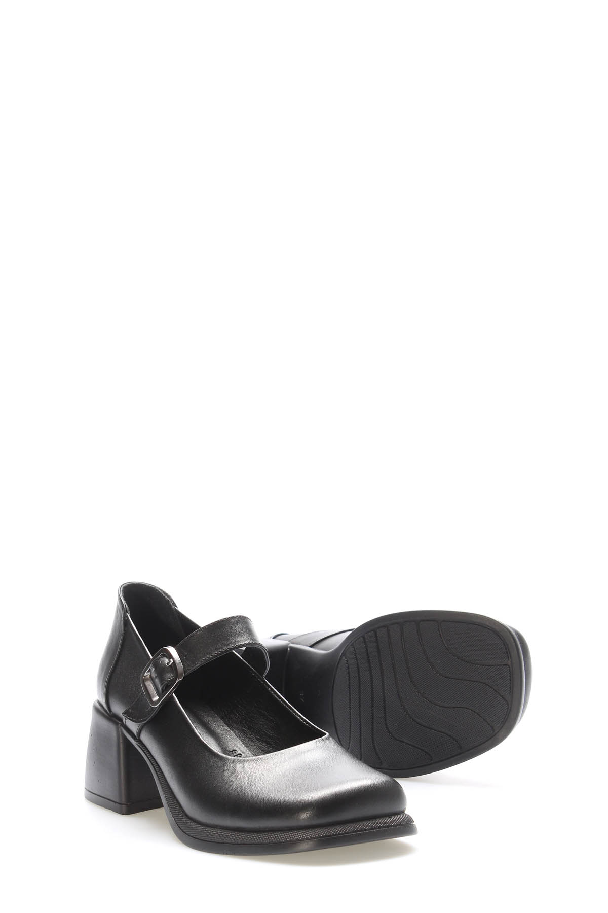 • Tugerdi Siyah İçi Dışı Hakiki Deri Kemerli Siyah Kalın Taban Topuklu Kadın Ayakkabı TG0921726188413