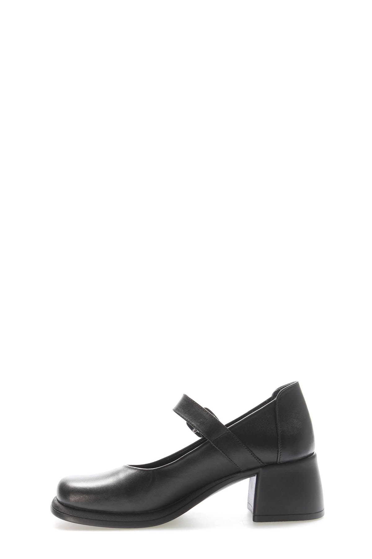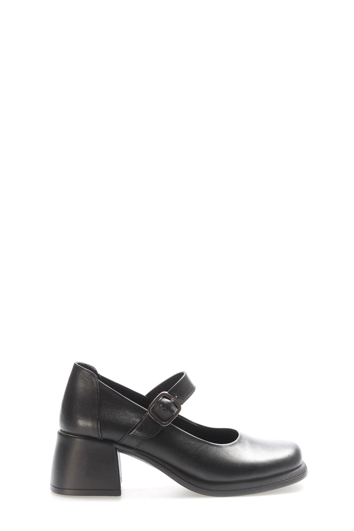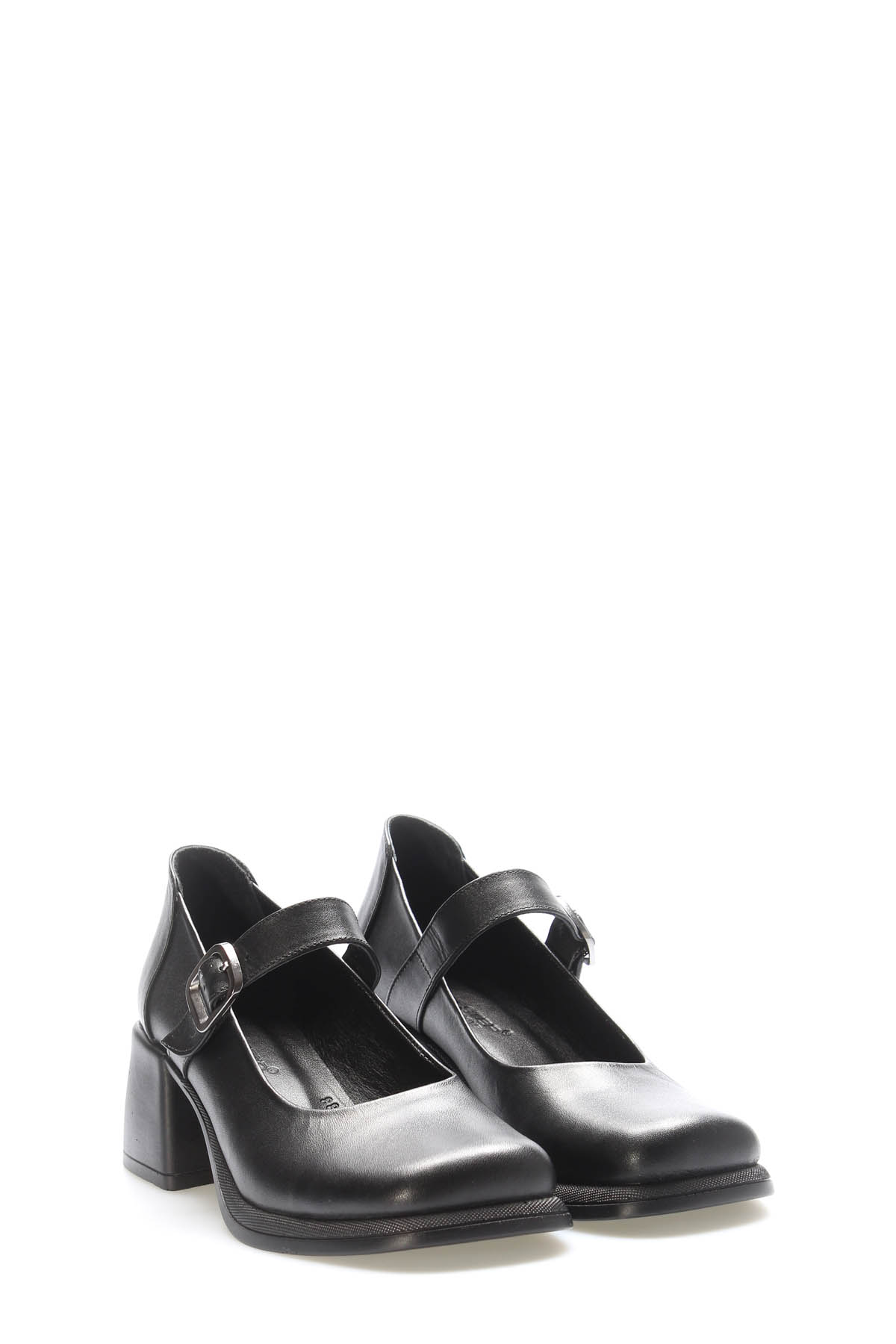 Tugerdi Siyah İçi Dışı Hakiki Deri Kemerli Siyah Kalın Taban Topuklu Kadın Ayakkabı TG0921726188413