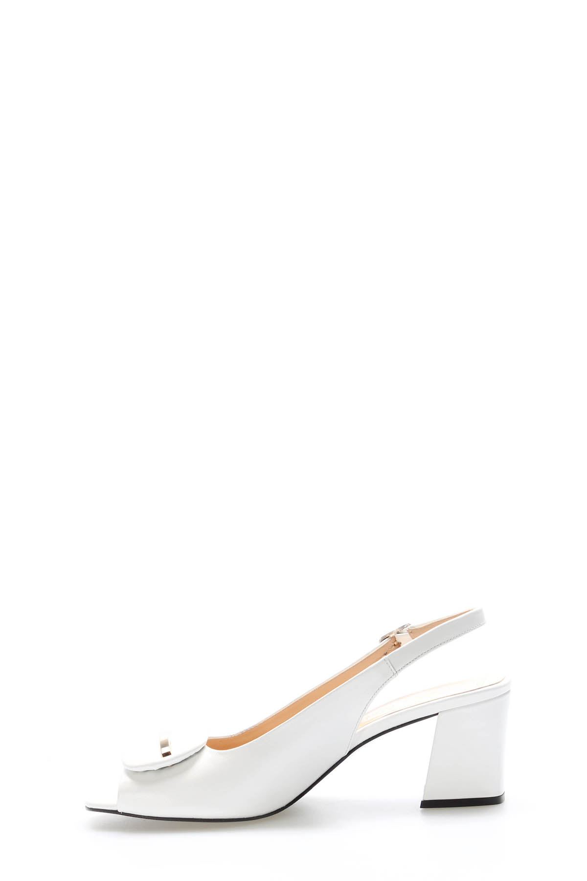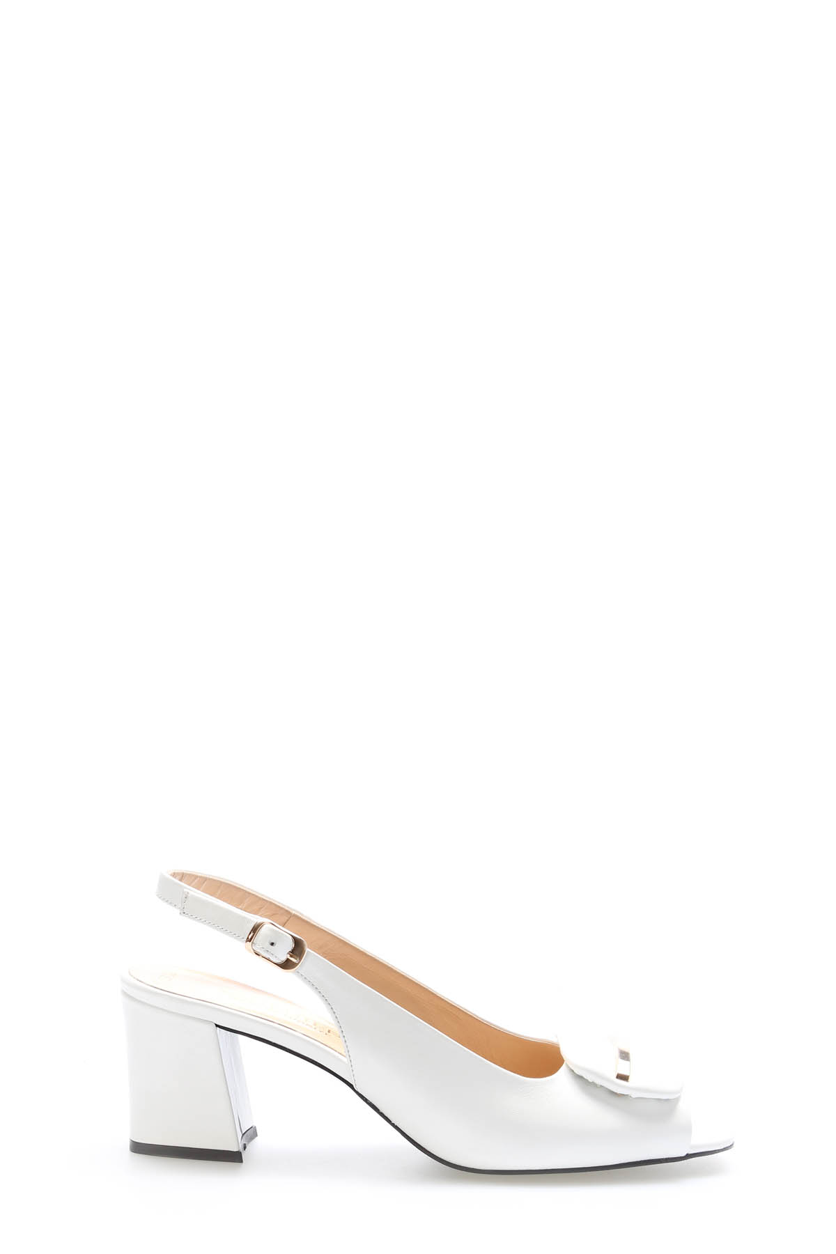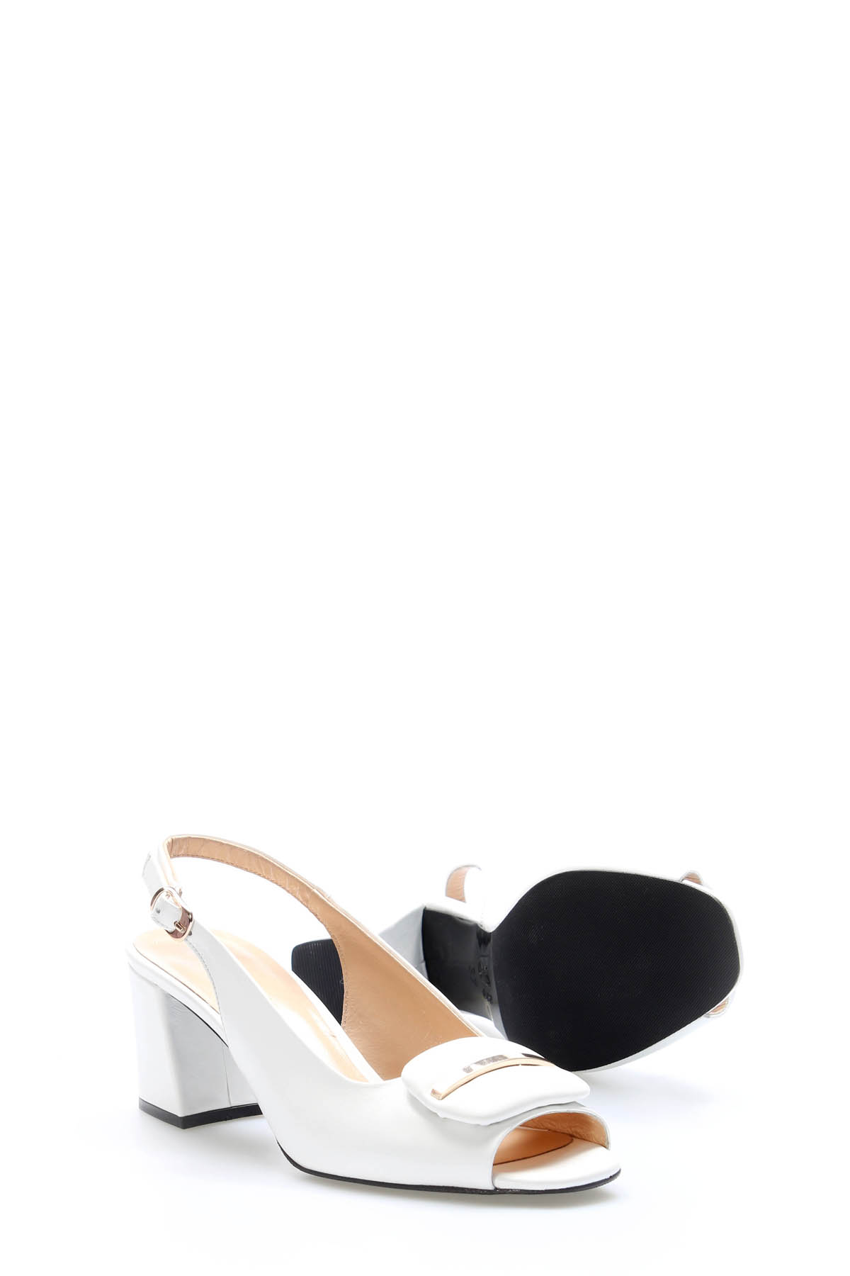 • Tugerdi Beyaz Hakiki Deri Kemerli Beyaz Kalın Taban Kaliteli Topuklu Kadın Ayakkabı TG092152612930