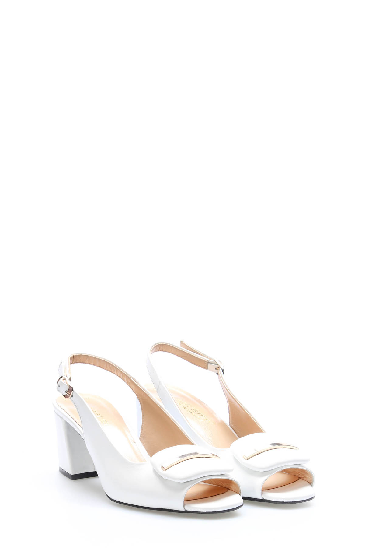 Tugerdi Beyaz Hakiki Deri Kemerli Beyaz Kalın Taban Kaliteli Topuklu Kadın Ayakkabı TG092152612930