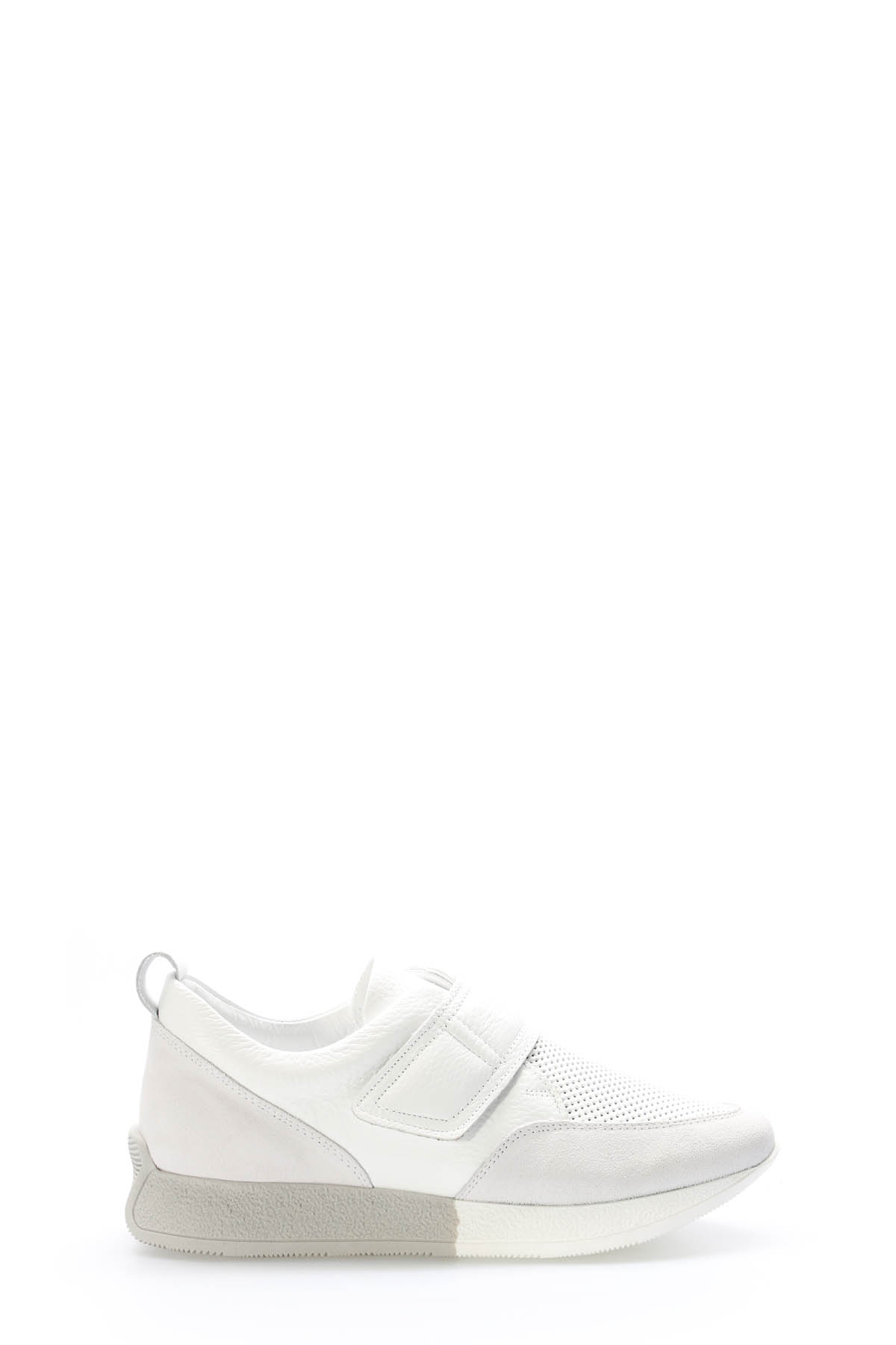 Tugerdi Beyaz Süet Hakiki Deri Bantlı Tipu Taban Kadın Casual Ayakkabı TG093562611965