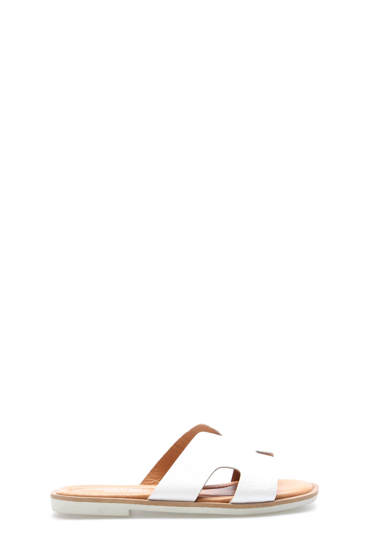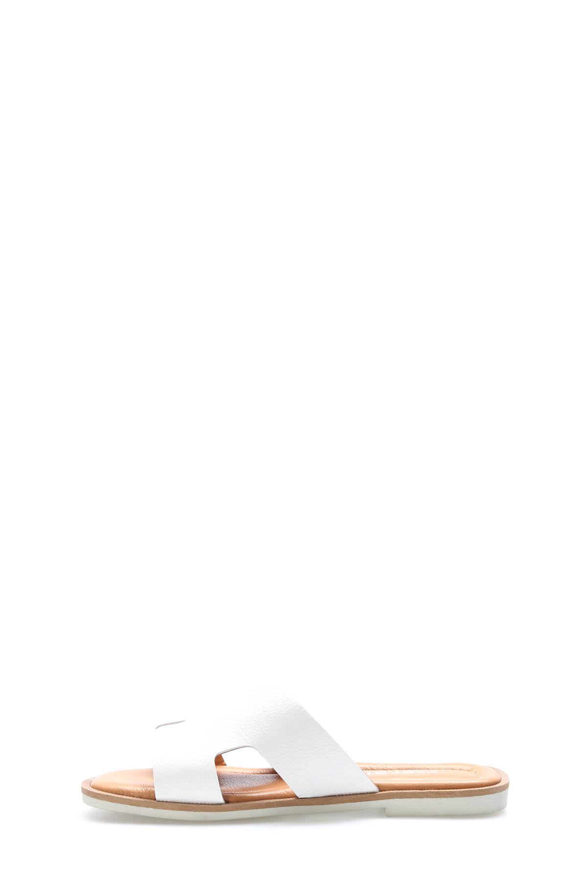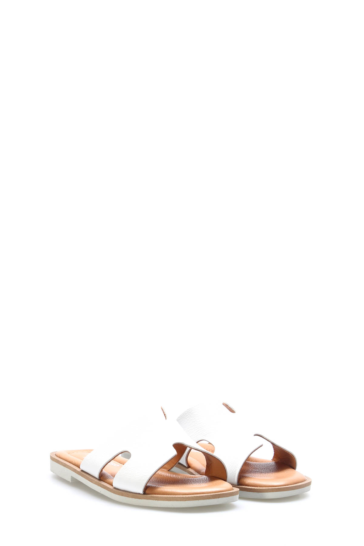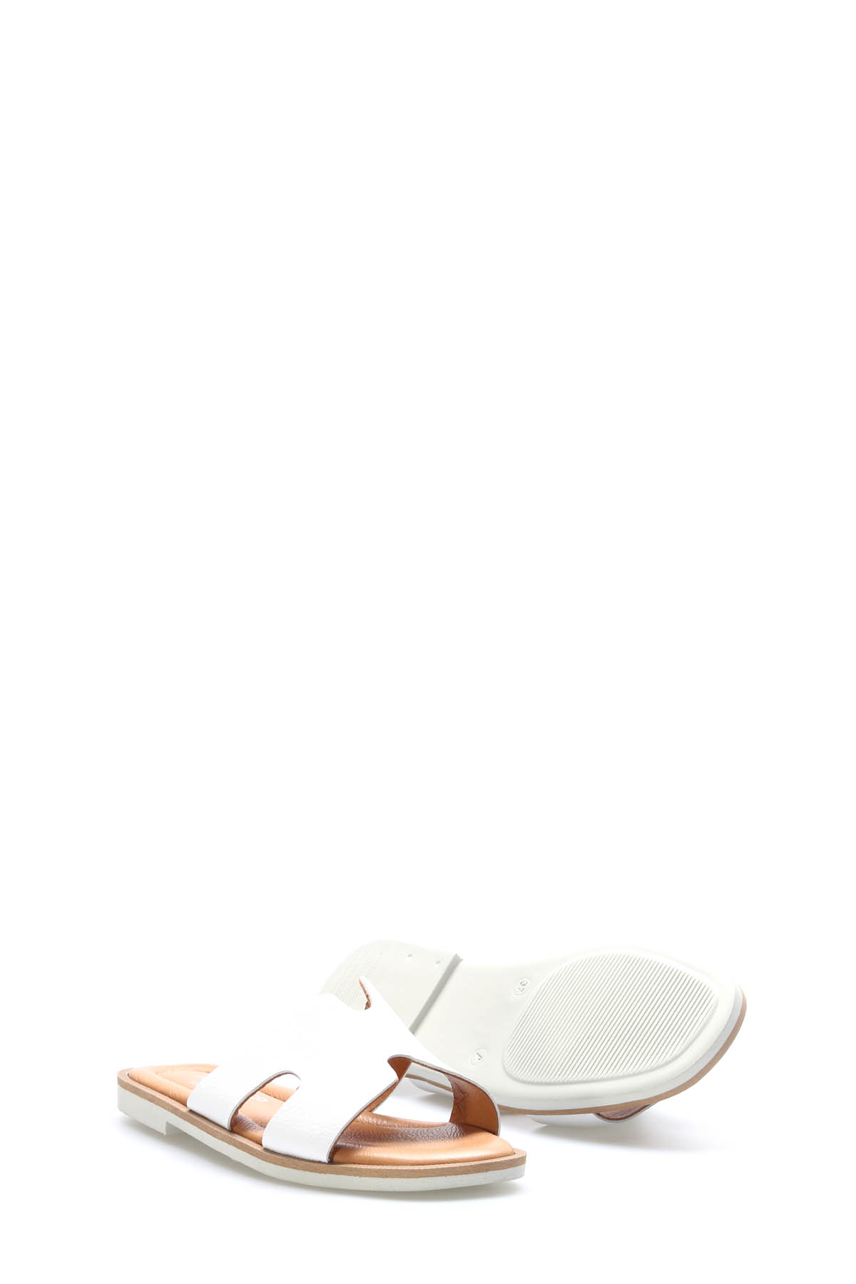 Tugerdi Beyaz İçi Dışı Hakiki Deri Termo Taban Kaliteli Düz Kadın Terlik TG0922726116818