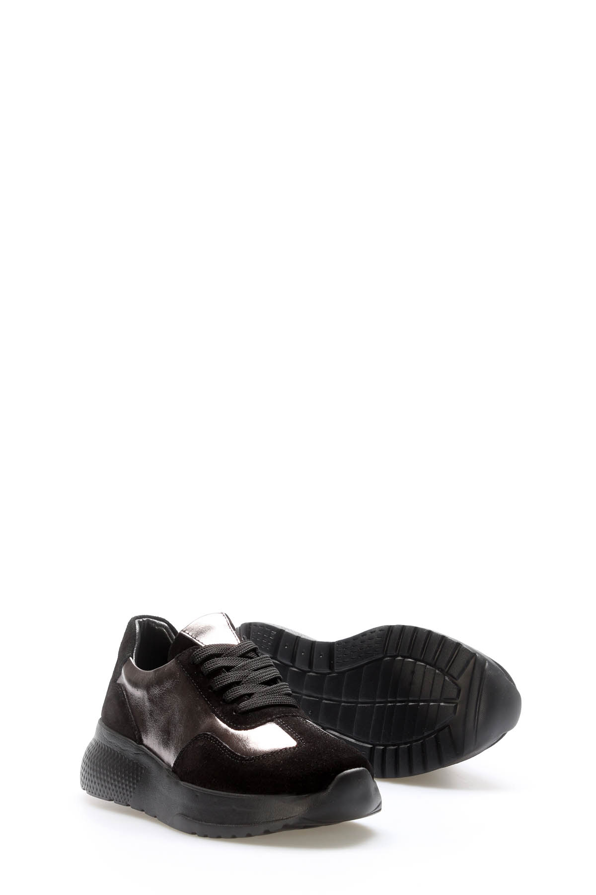 • Tugerdi Siyah Hakiki Deri Bağcıklı Siyah Hafif Taban Kadın Casual Ayakkabı TG099822611460
