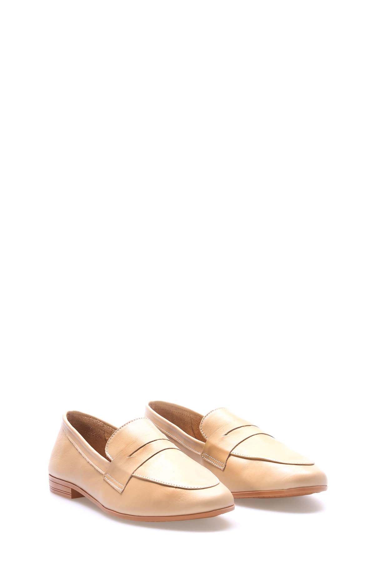 Tugerdi Bej İçi Dışı Hakiki Deri Tipu Taban Kaliteli Kadın Babet Ayakkabı TG094192615151626