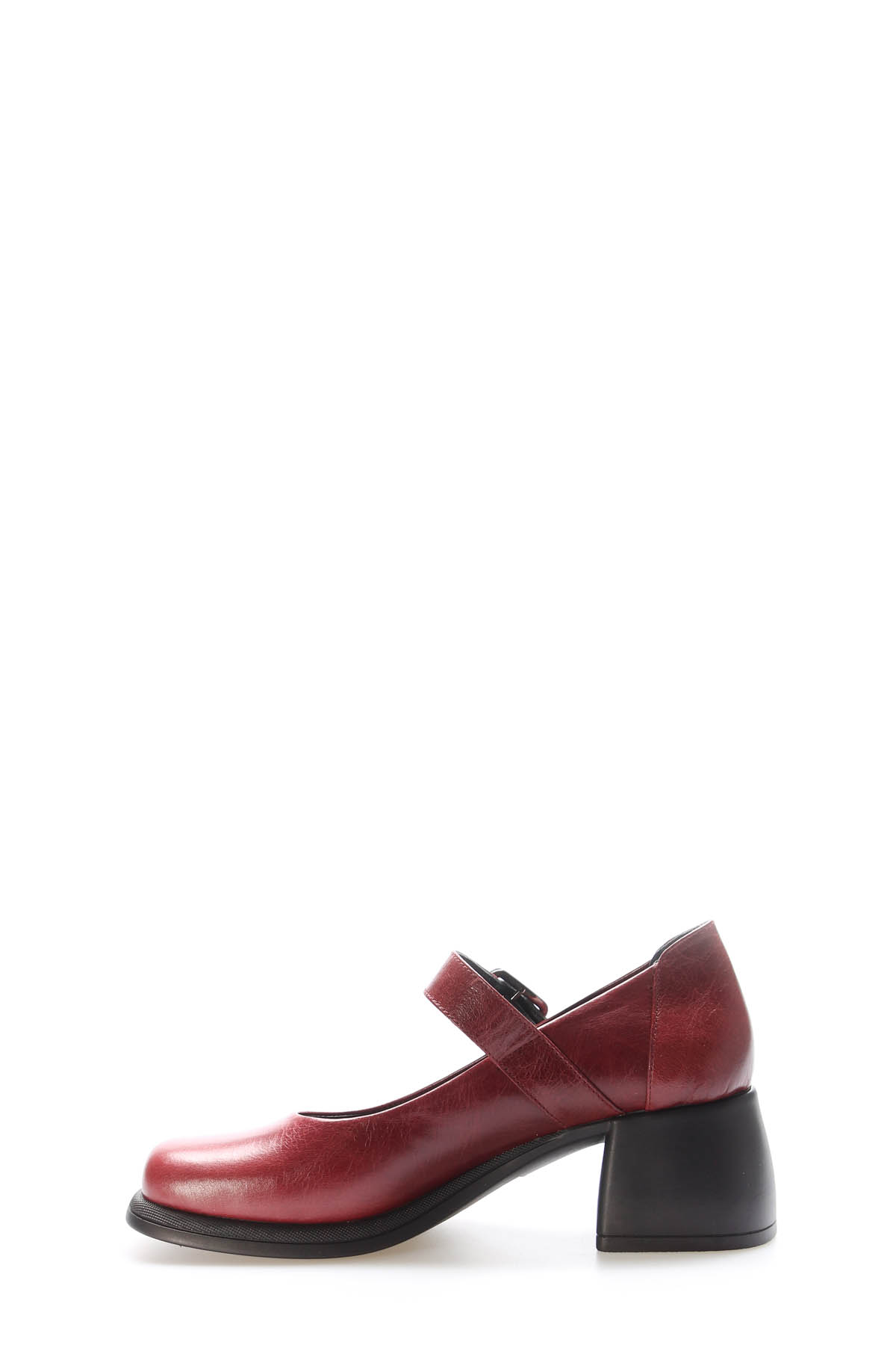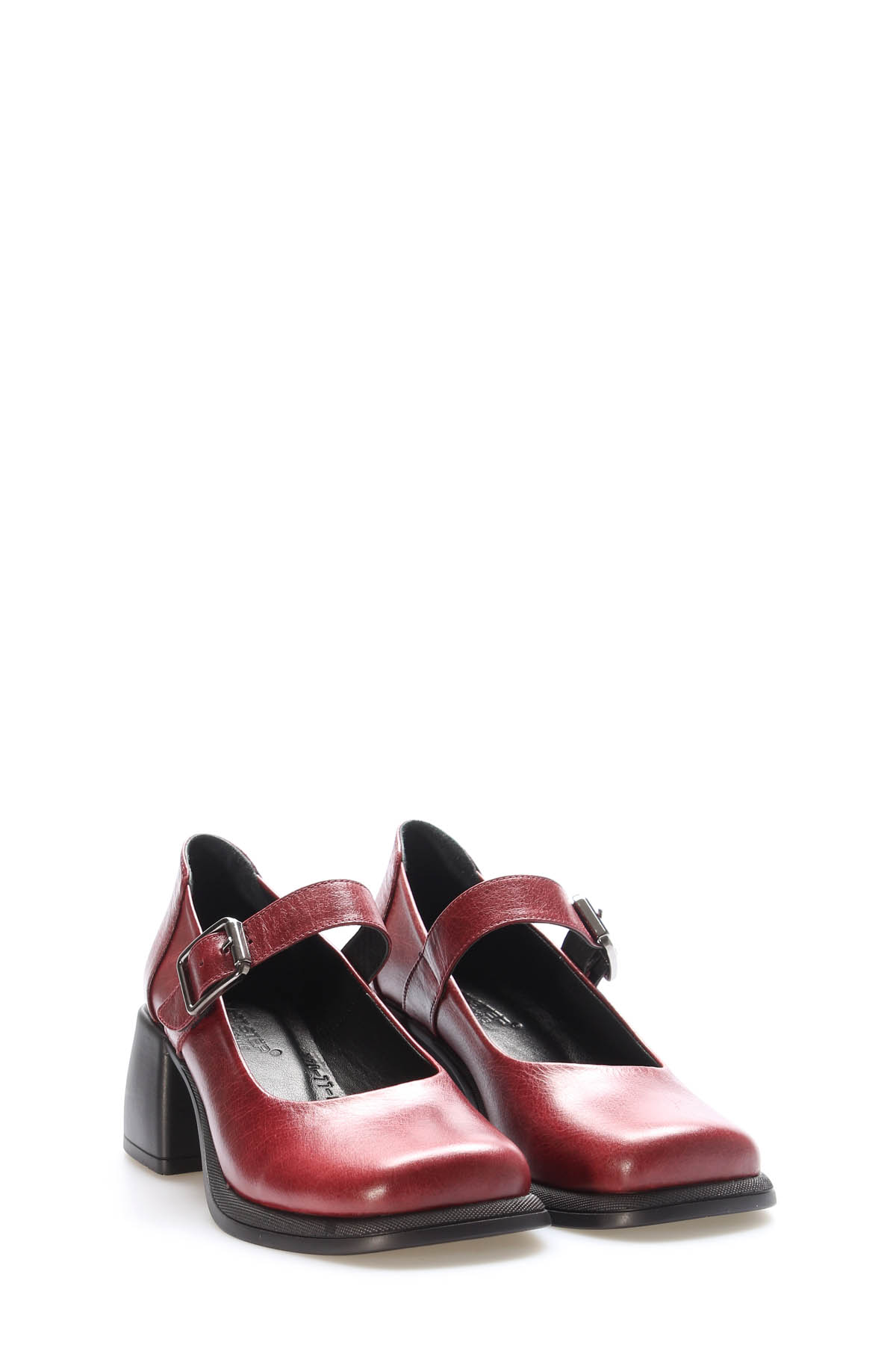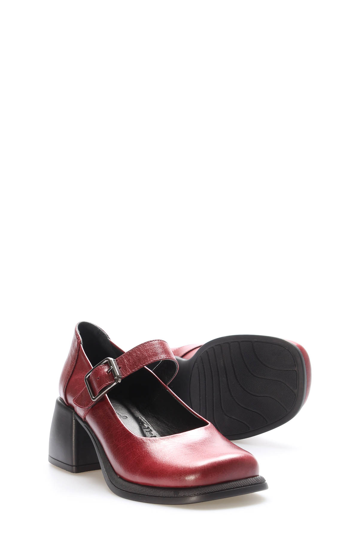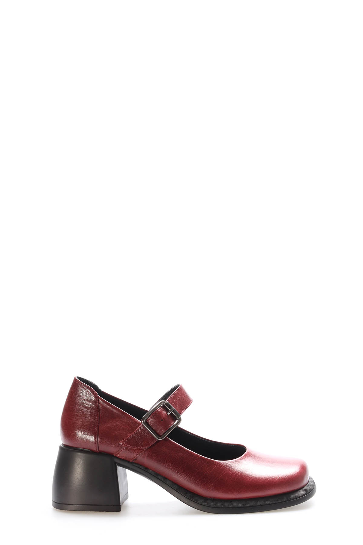 Tugerdi Bordo Hakiki Deri Siyah Hafif Kalın Taban Kemerli Topuklu Kadın Ayakkabı TG0921726188413