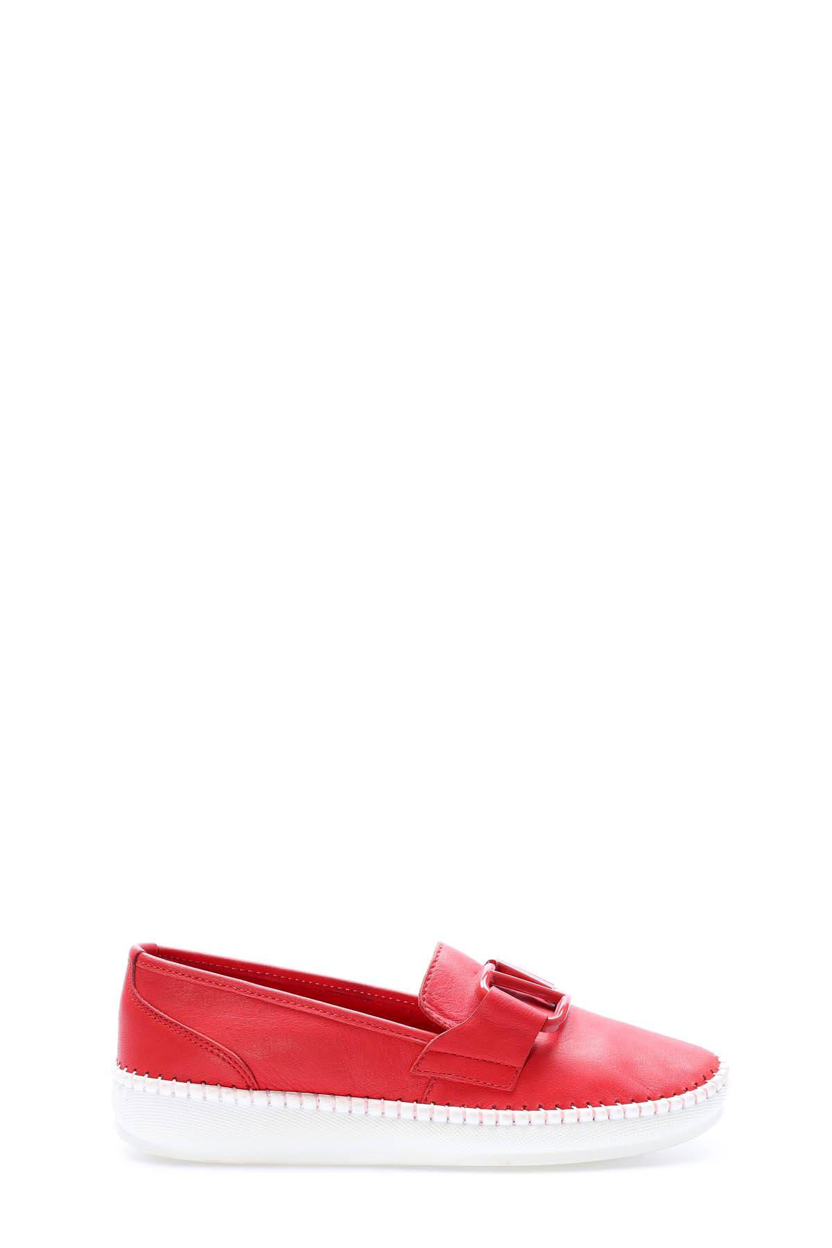 Tugerdi Kırmızı Tokalı İçi Dışı Hakiki Deri Beyaz Hafif Taban Tarz Kadın Casual Ayakkabı TG091642612454
