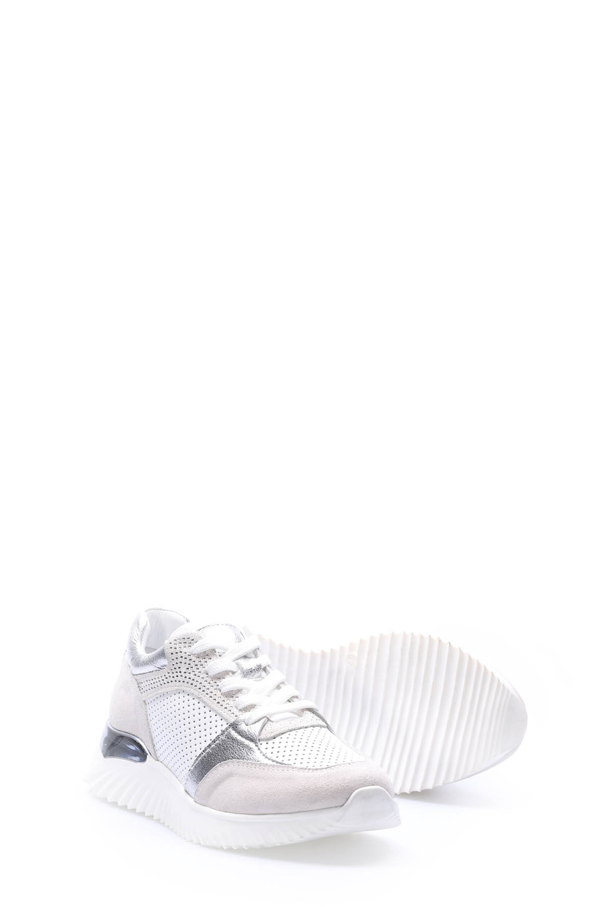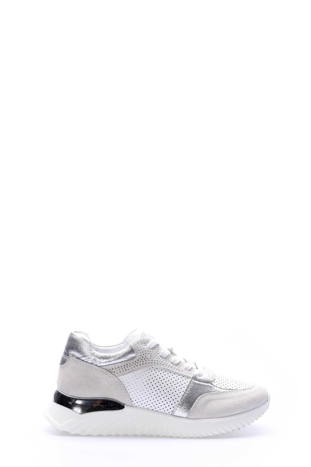 • Tugerdi Beyaz Gümüş Hakiki Deri Bağcıklı Termo Taban Kadın Casual Ayakkabı TG0975726125451
