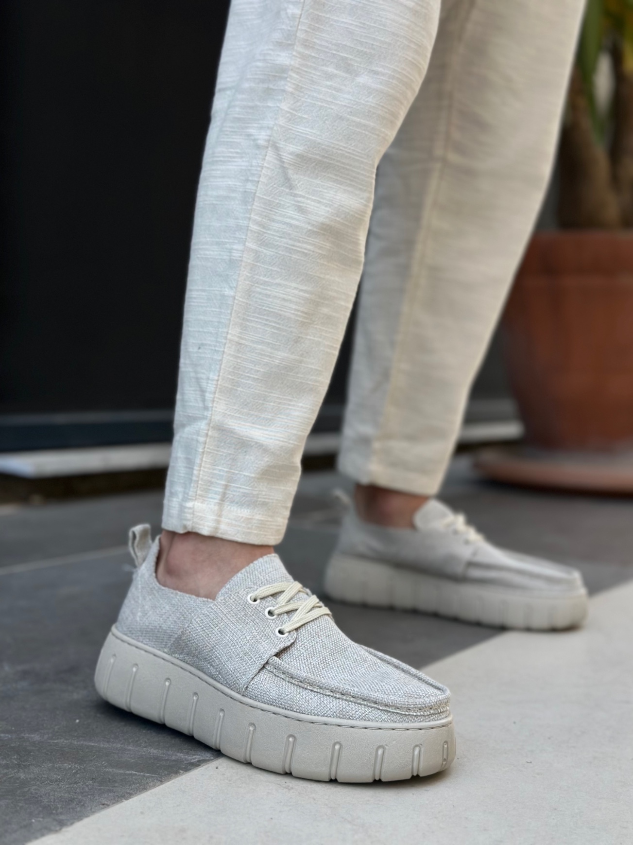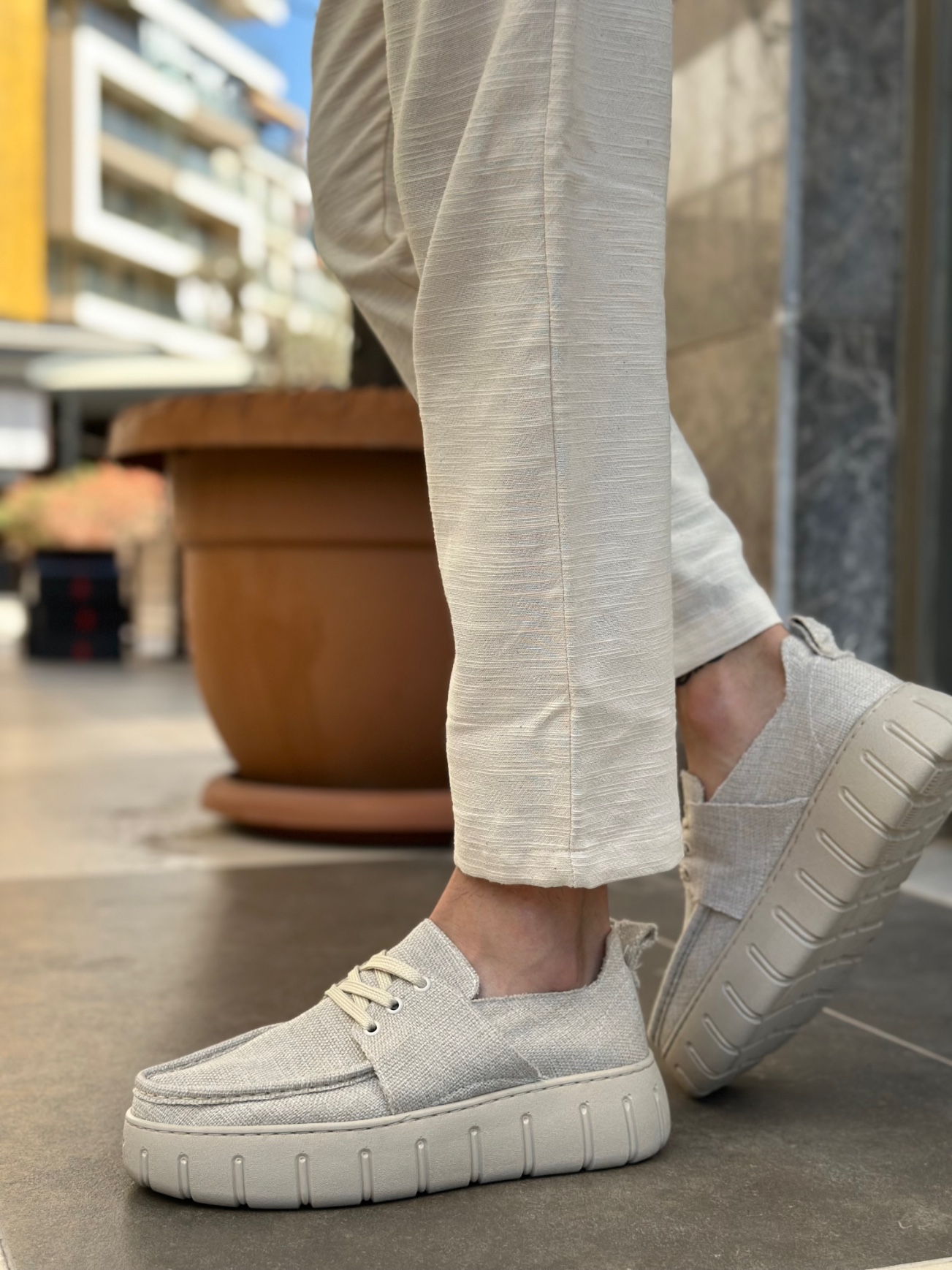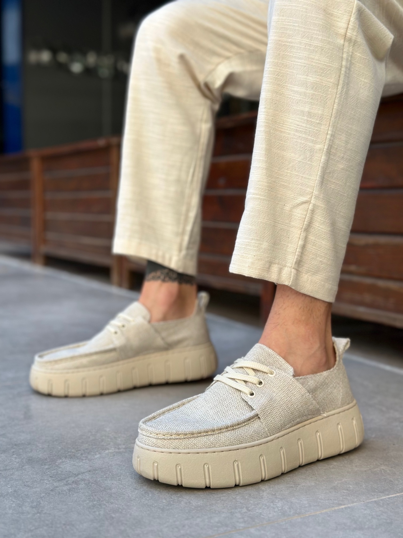 • Tugerdi Krem Keten Hafif Yüksek Taban Bağcıklı Erkek Yazlık Ayakkabı TGE230826