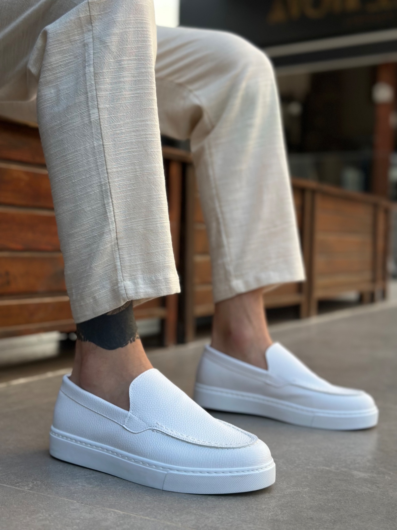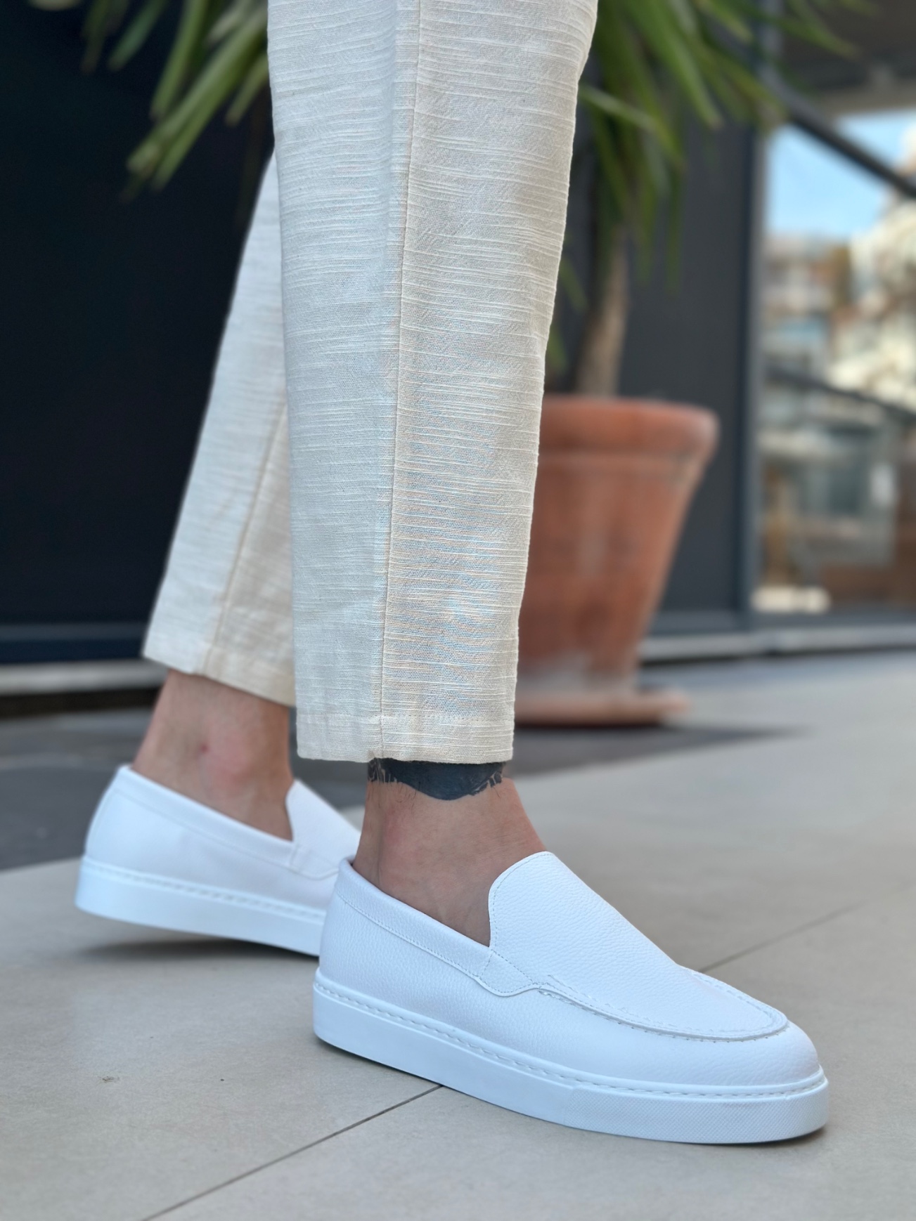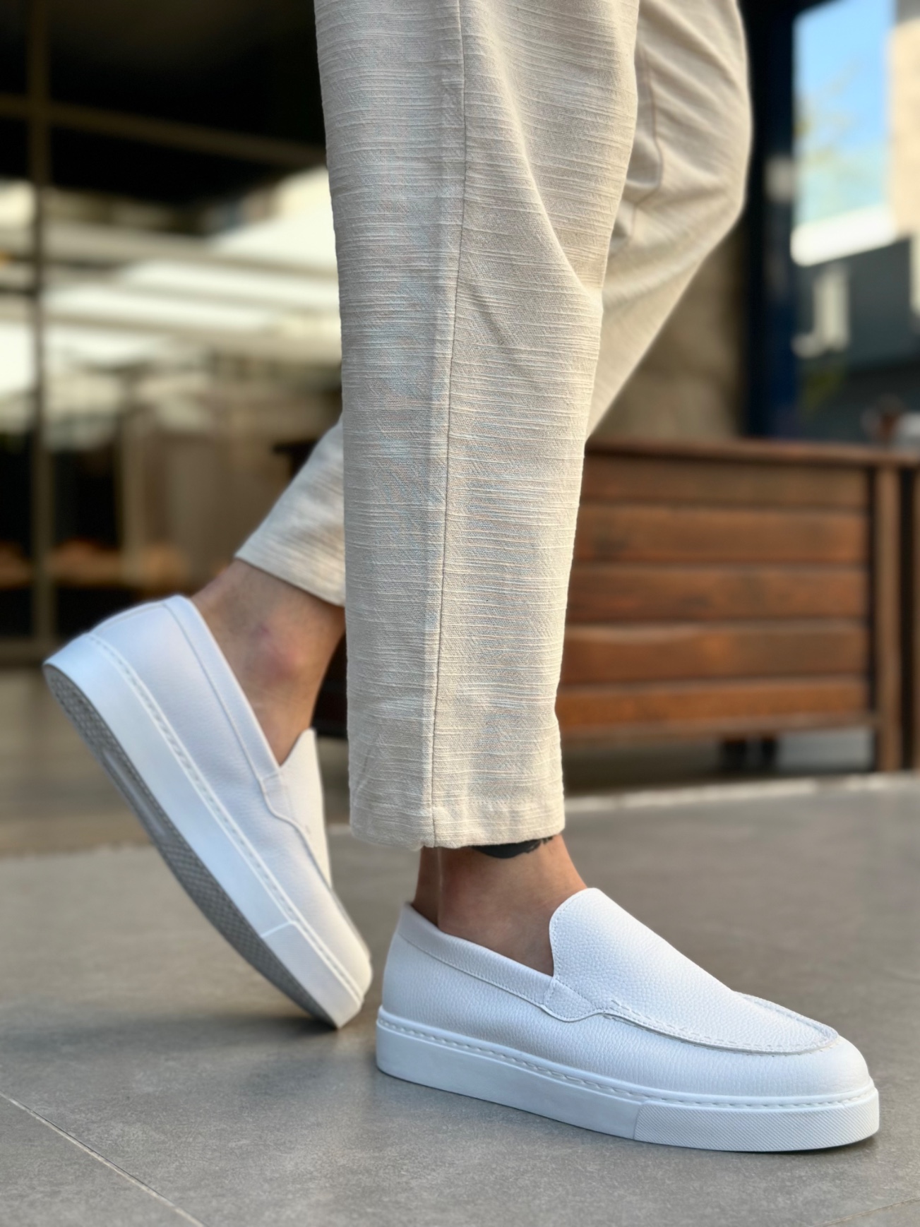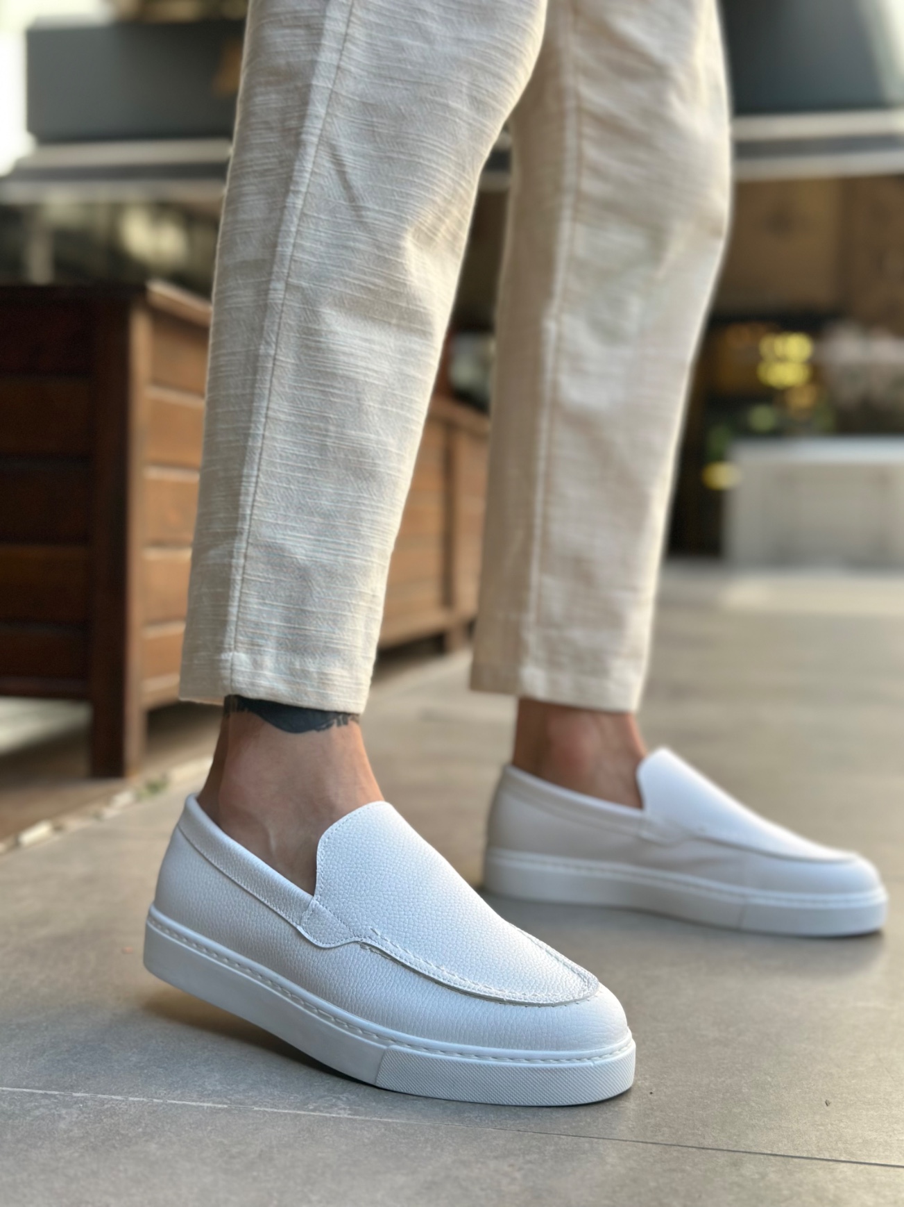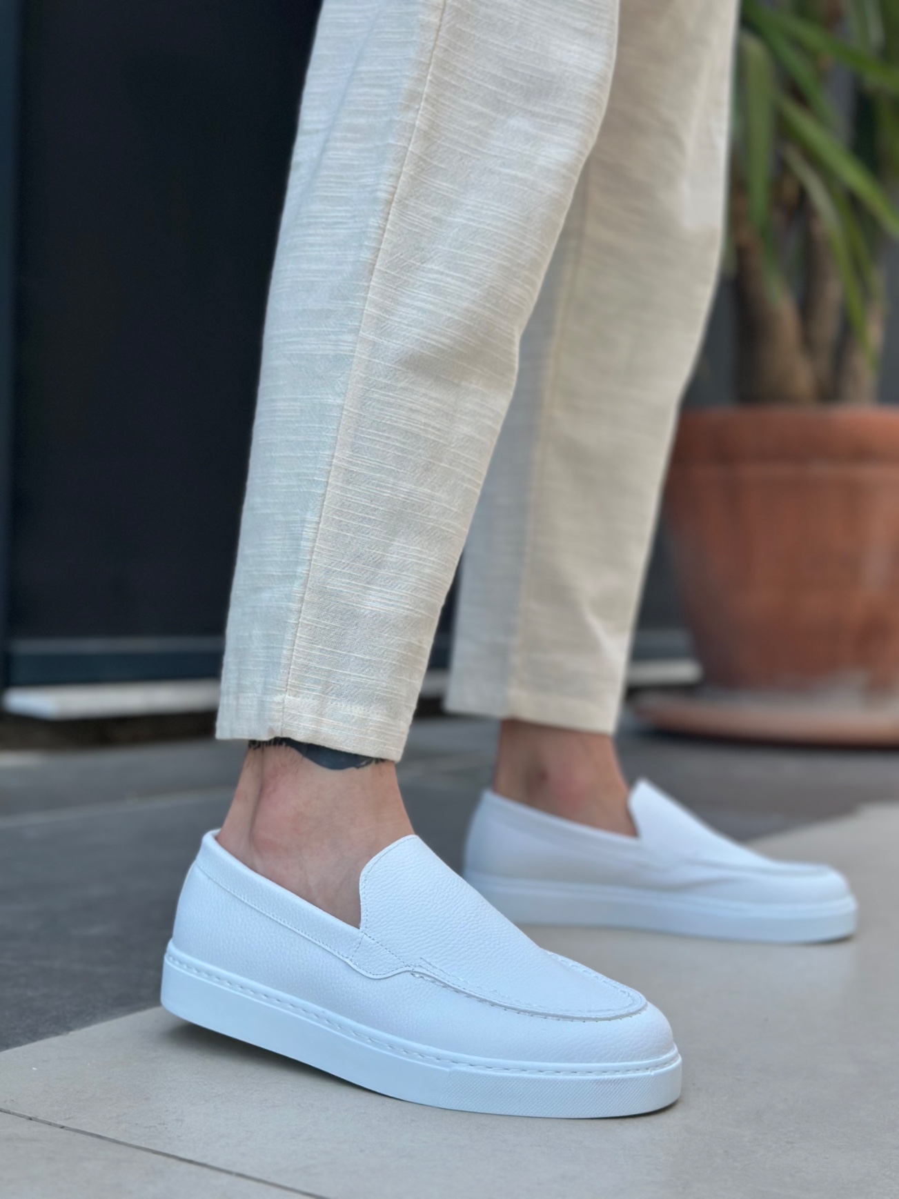 • Tugerdi Beyaz Hafif Yüksek Taban Bağcıksız Tarz Erkek Ayakkabı TGE230391