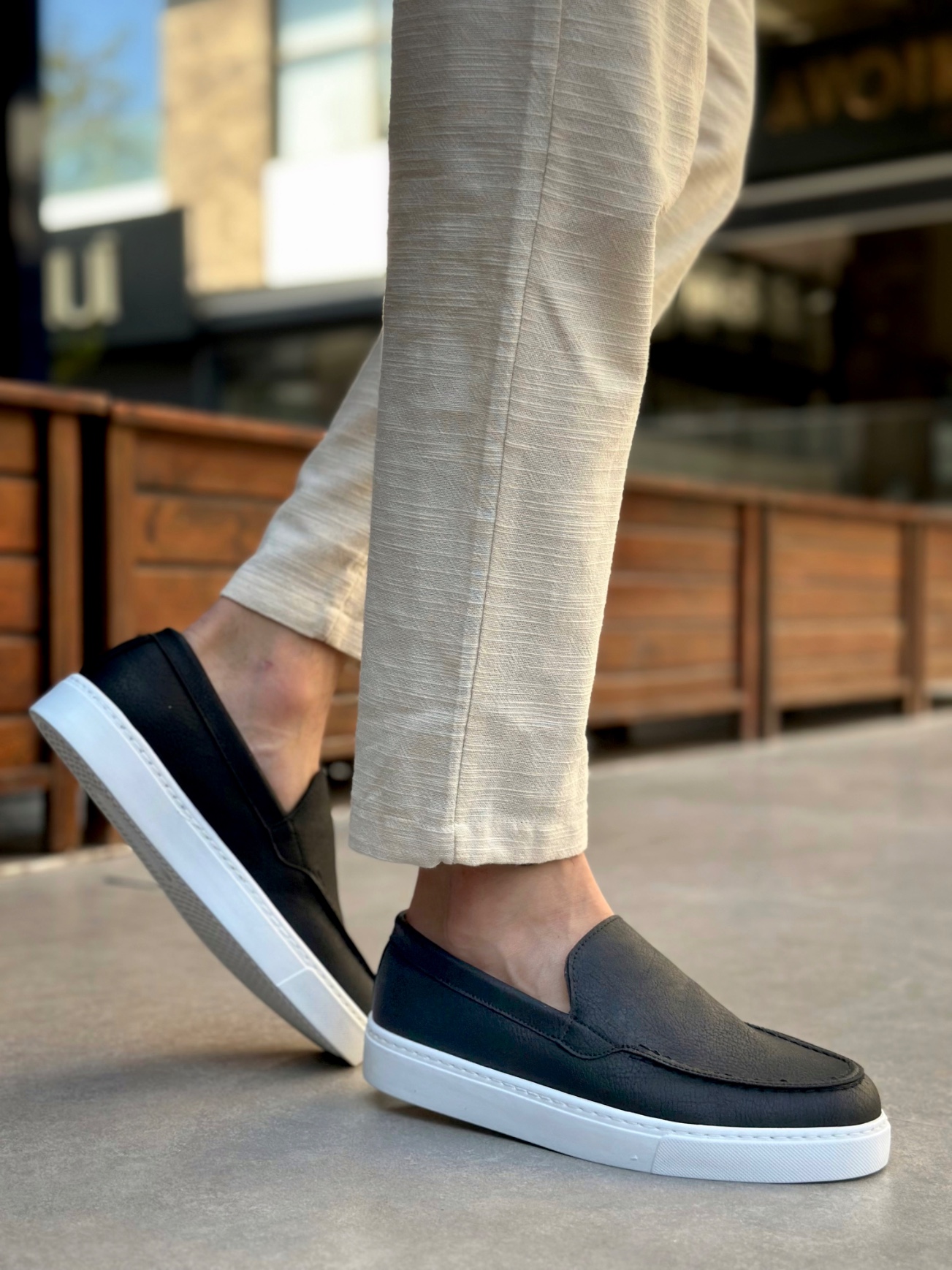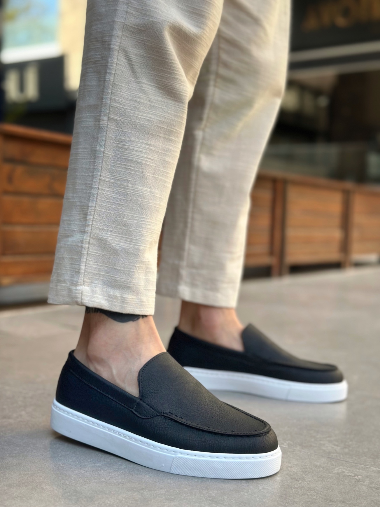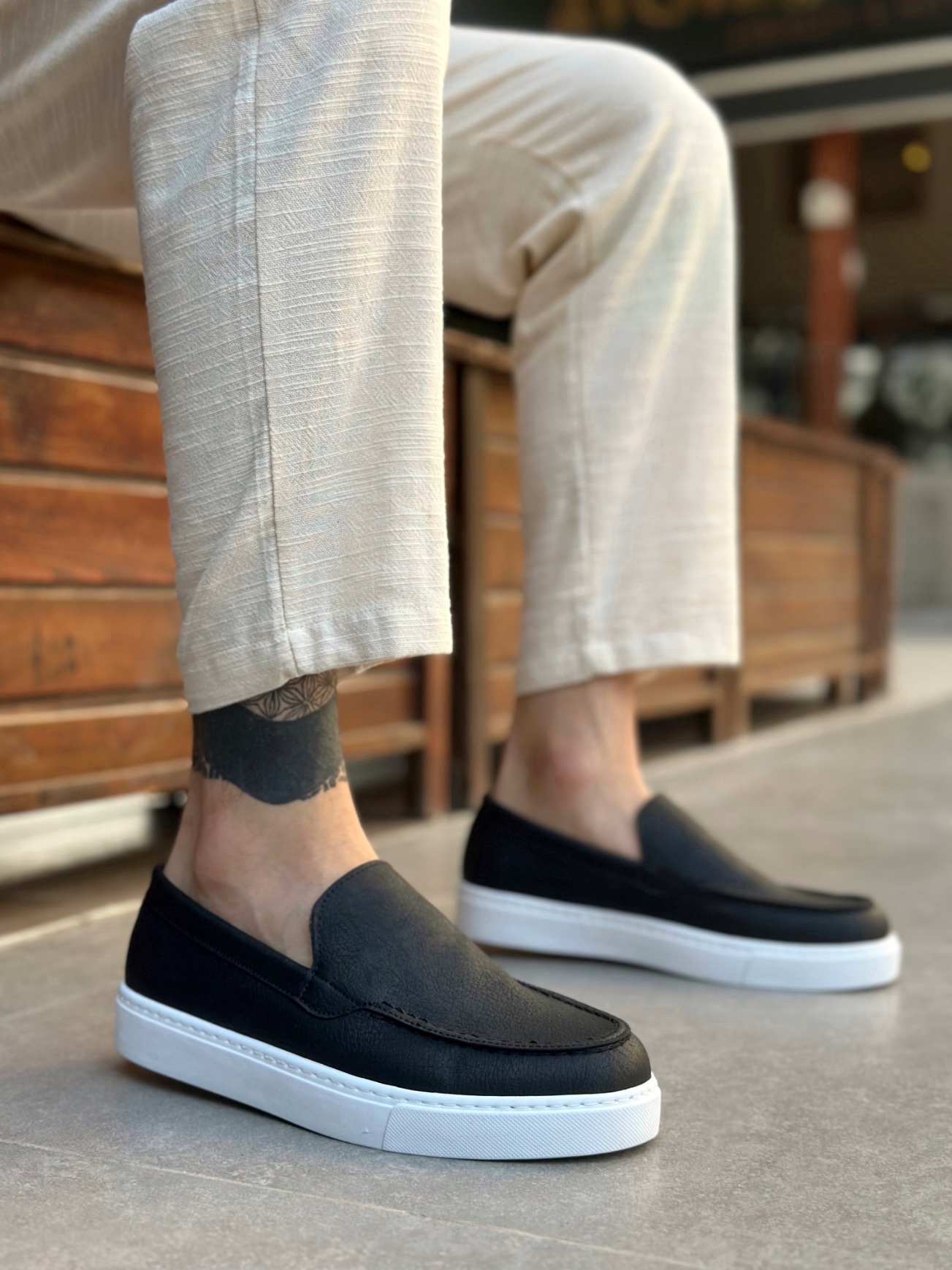 • Tugerdi Siyah Hafif Yüksek Taban Bağcıksız Tarz Erkek Ayakkabı TGE230391