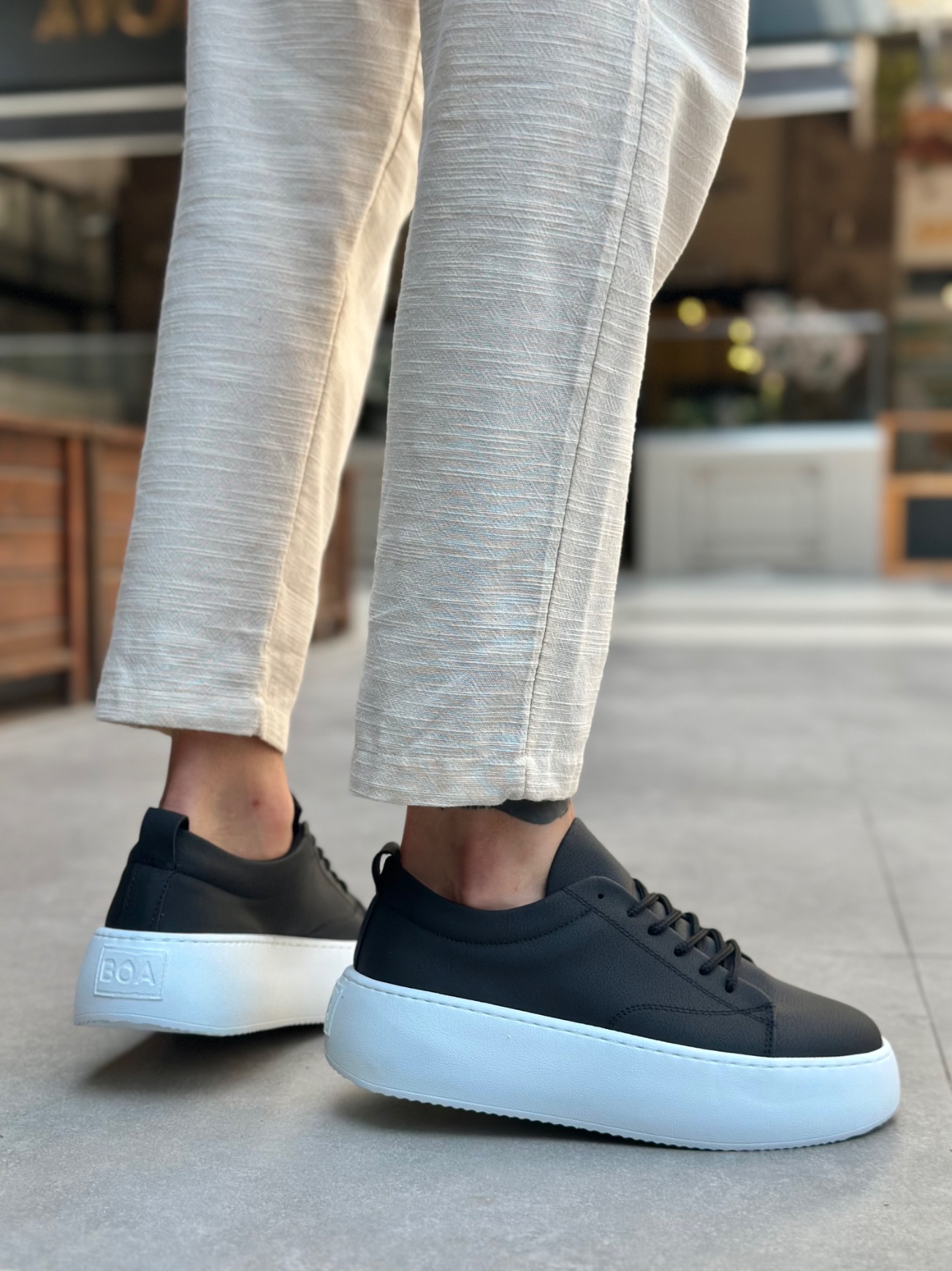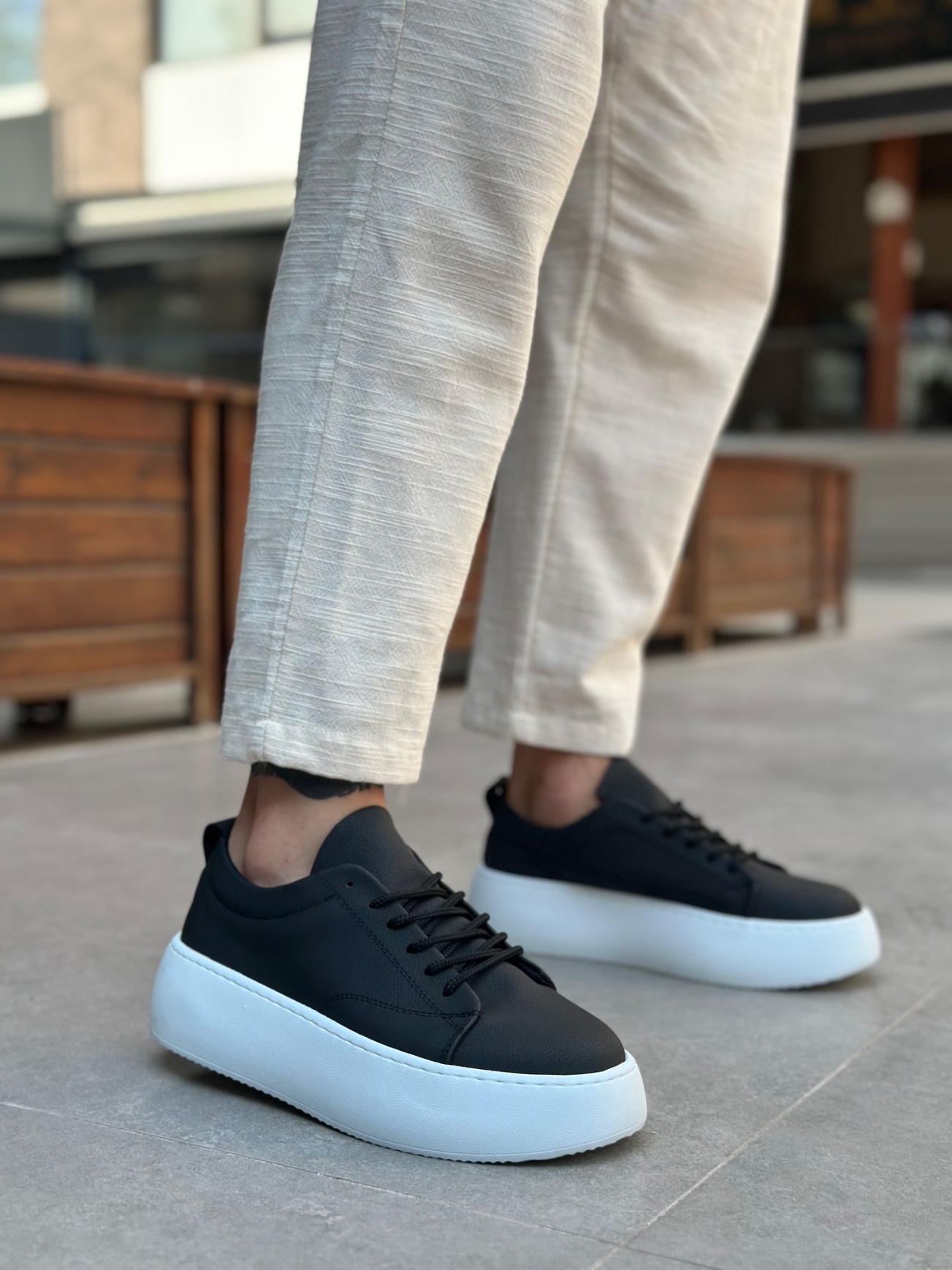 • Tugerdi Siyah Bağcıklı Hafif Yüksek Beyaz Taban Tarz Erkek Spor Ayakkabı TGD230161