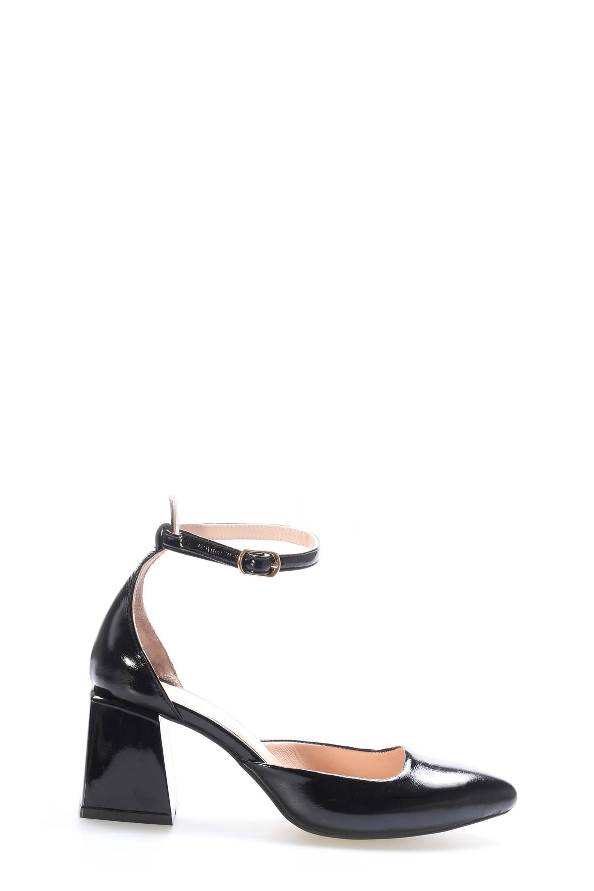 Tugerdi Siyah Rugan Hakiki Deri Jurdan Taban Kemerli Kaliteli Kadın Topuklu Ayakkabı TG09064261523