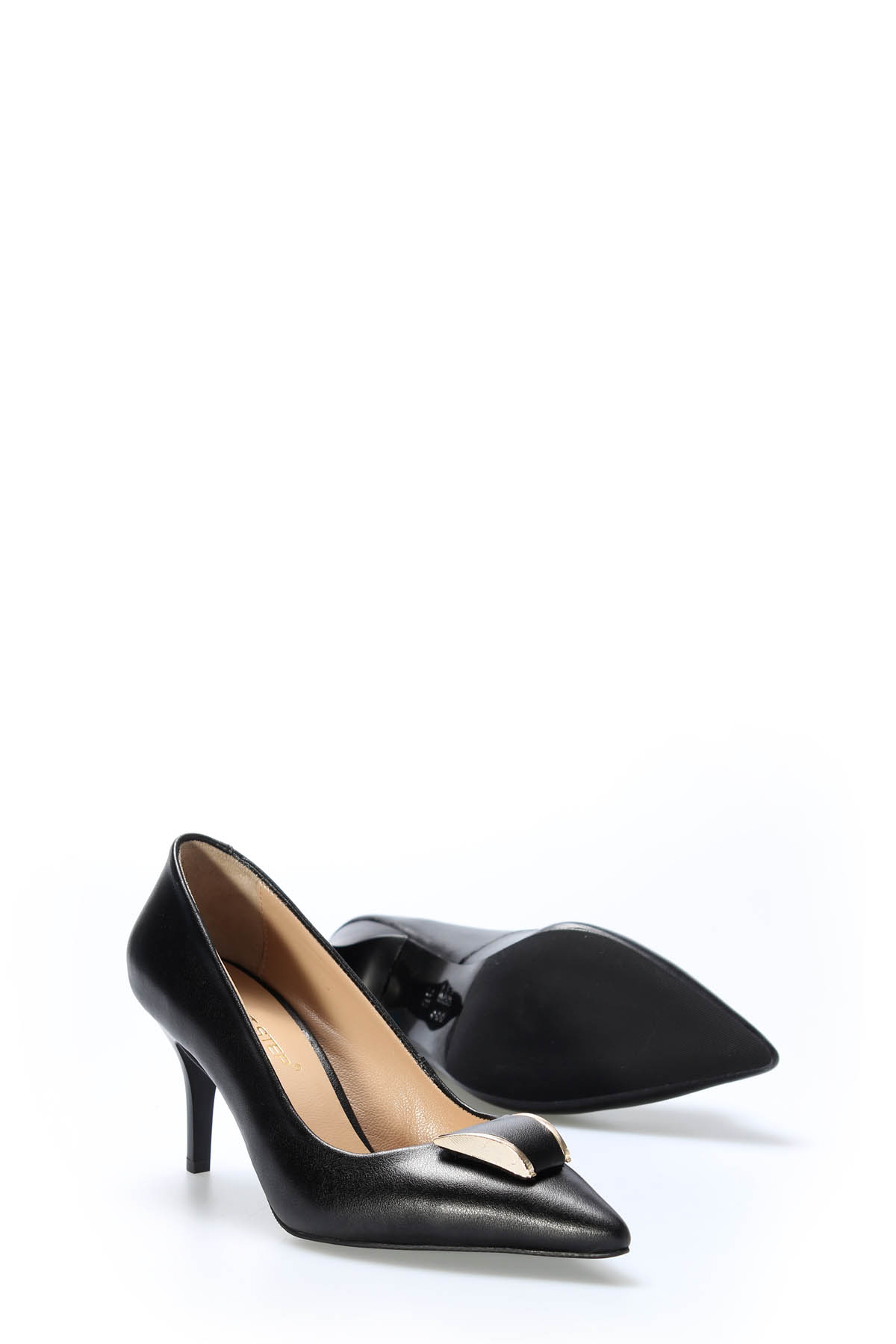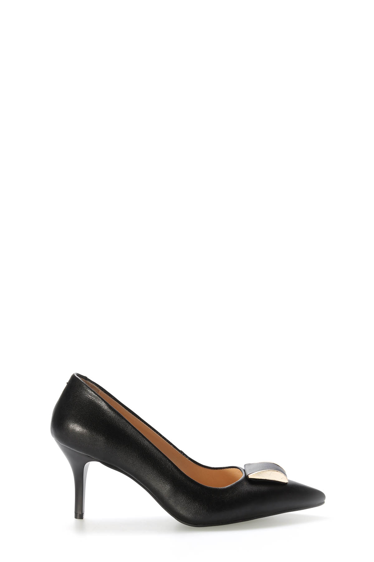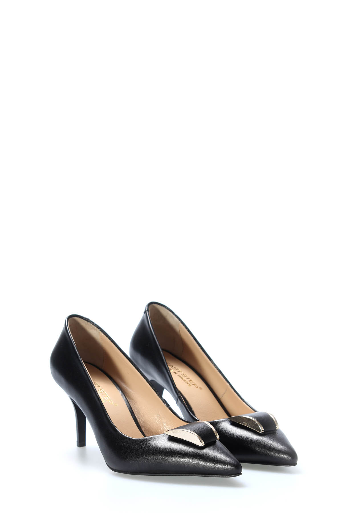 • Tugerdi Siyah Hakiki Deri Jurdan Taban Kaliteli İnce Topuklu Kadın Ayakkabı TG092152613520