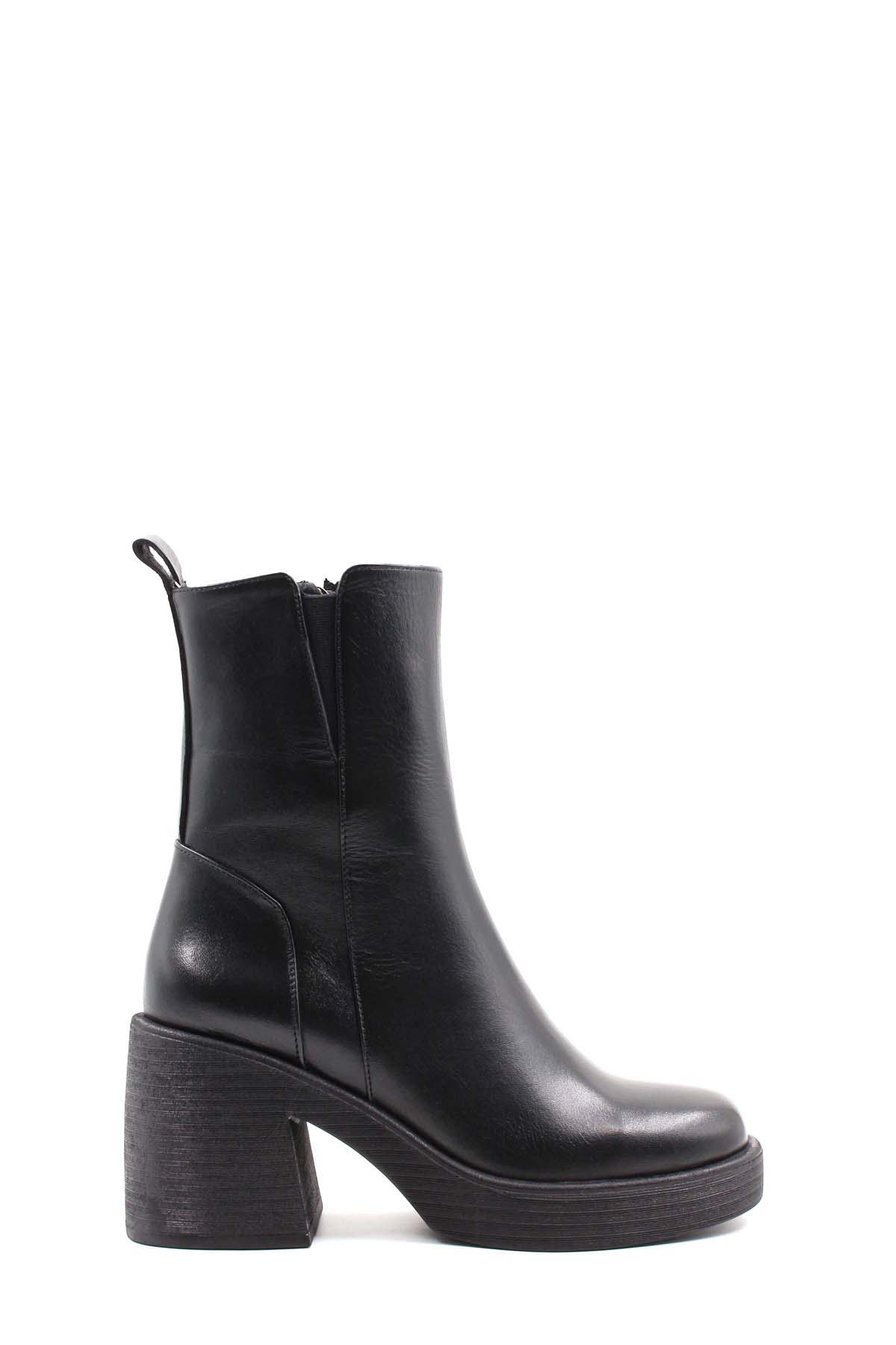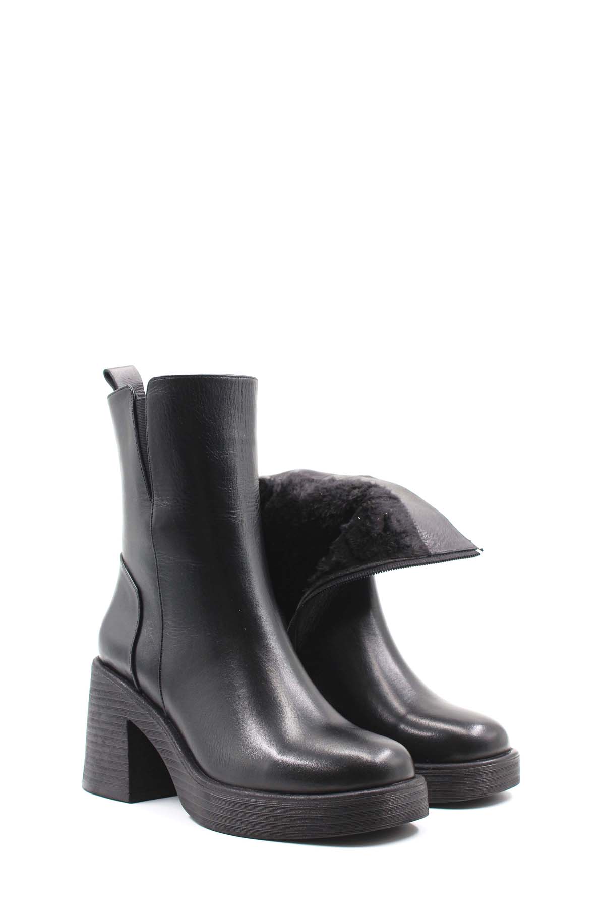 • Tugerdi Siyah Hakiki Deri Fermuarlı Termo Taban Kaliteli Topuklu Kadın Bot TG09217192610651113