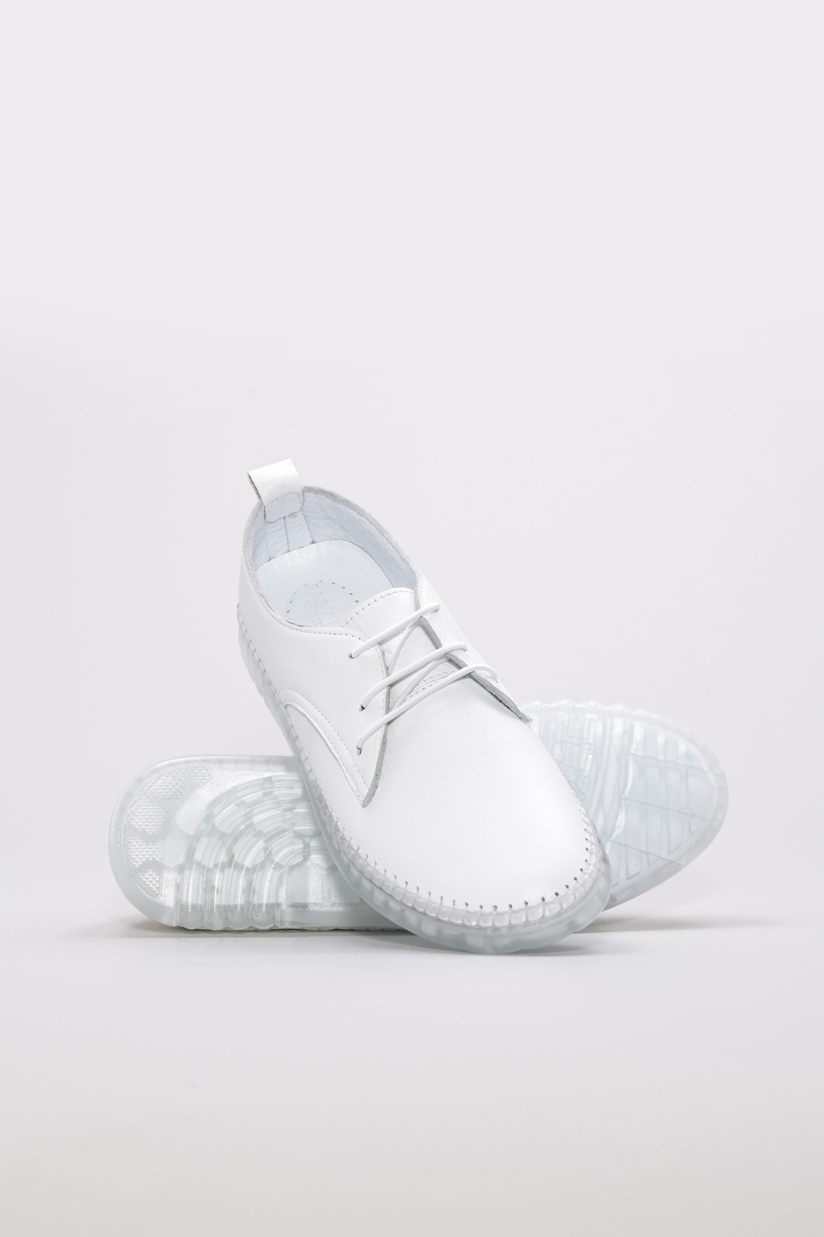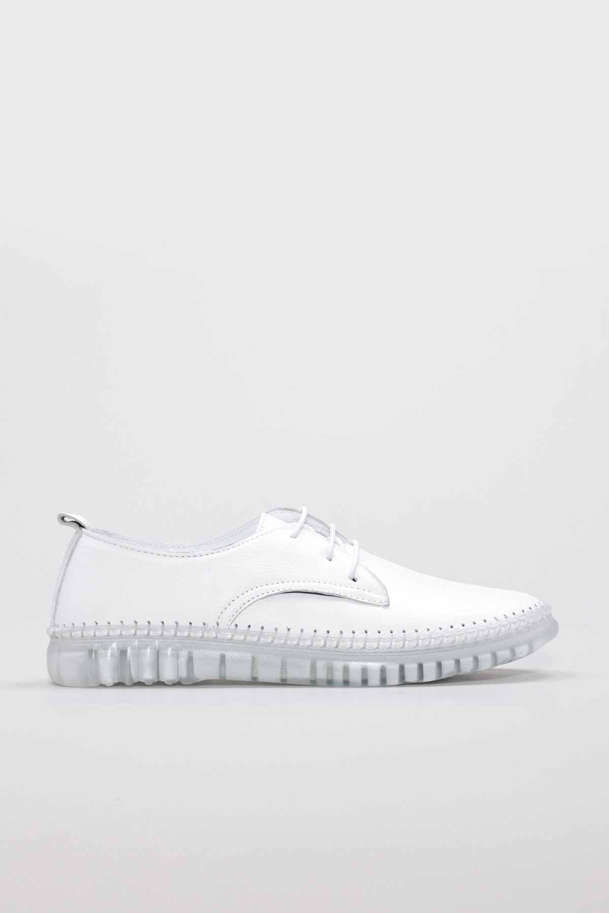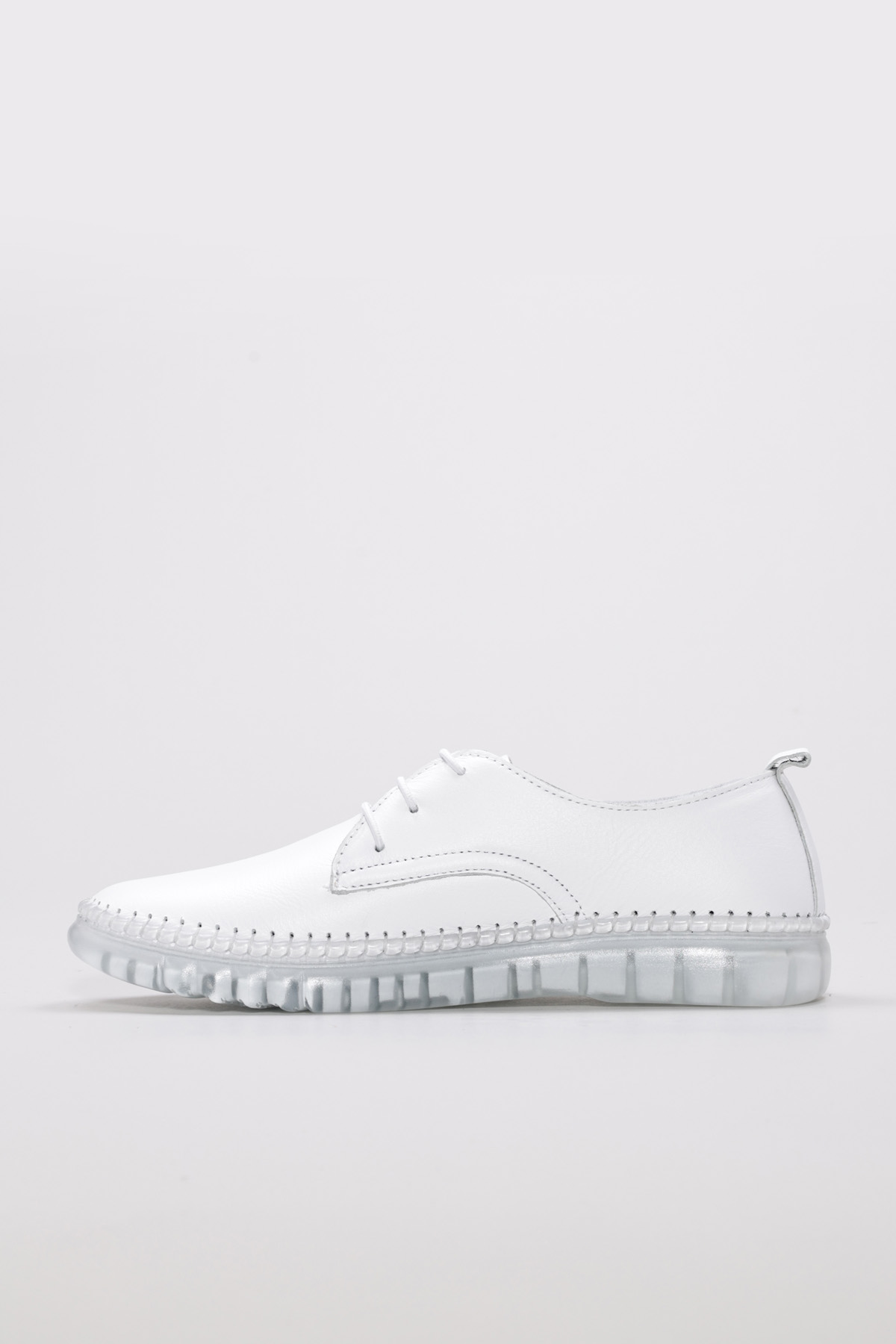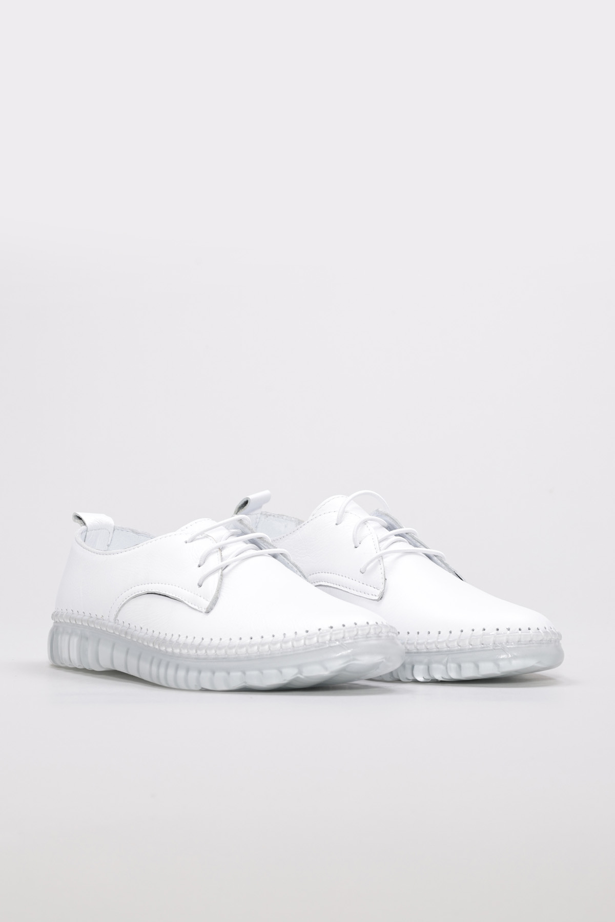 Tugerdi Beyaz Hakiki Deri Kauçuk Taban Bağcıklı Günlük Kadın Ayakkabı TG096092615476