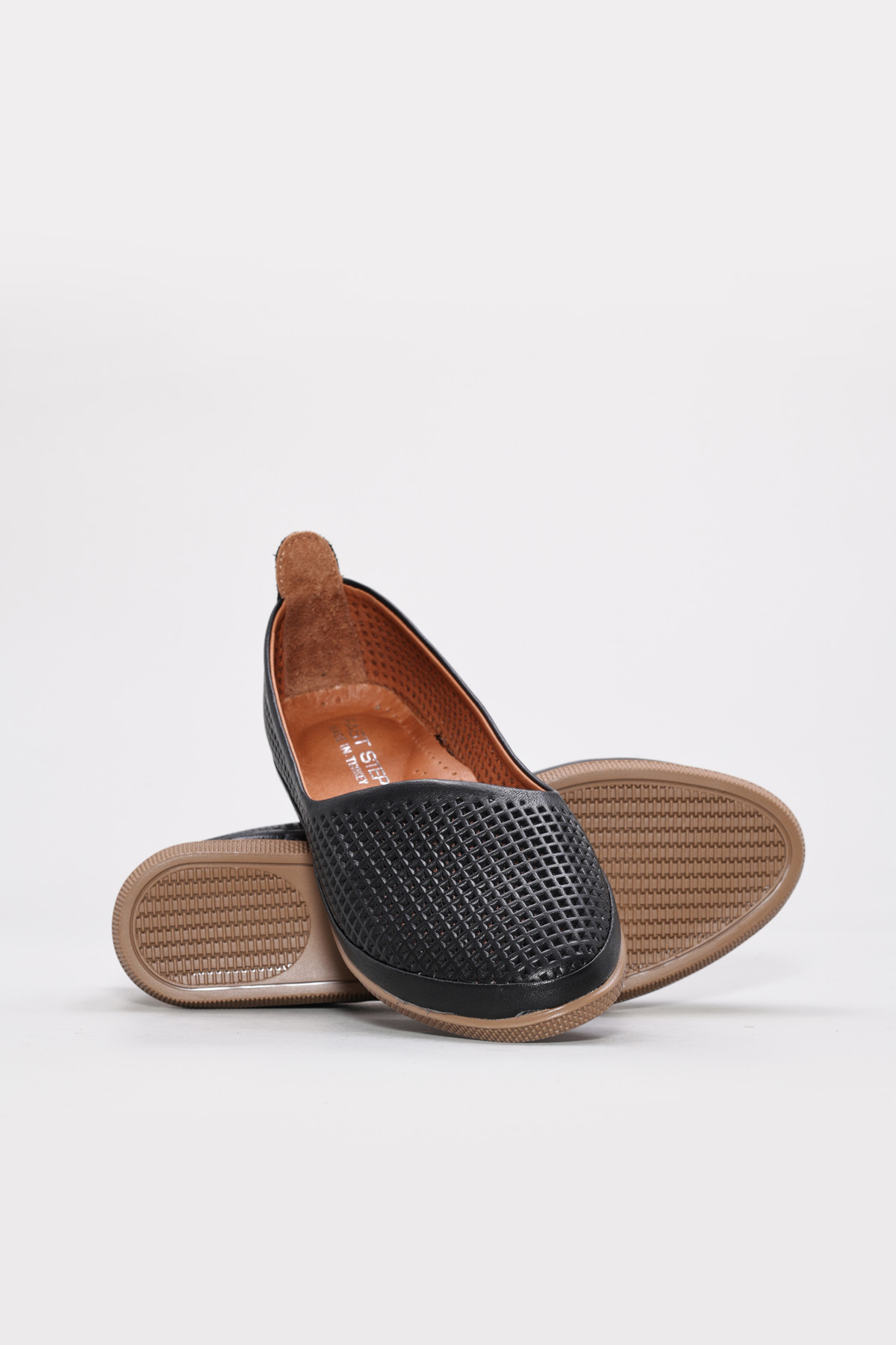 Tugerdi Siyah İçi Dışı Hakiki Deri Jel Taban Kaliteli Kadın Babet Ayakkabı TG094192612513