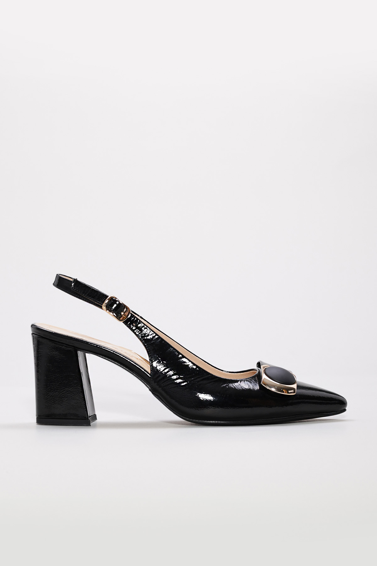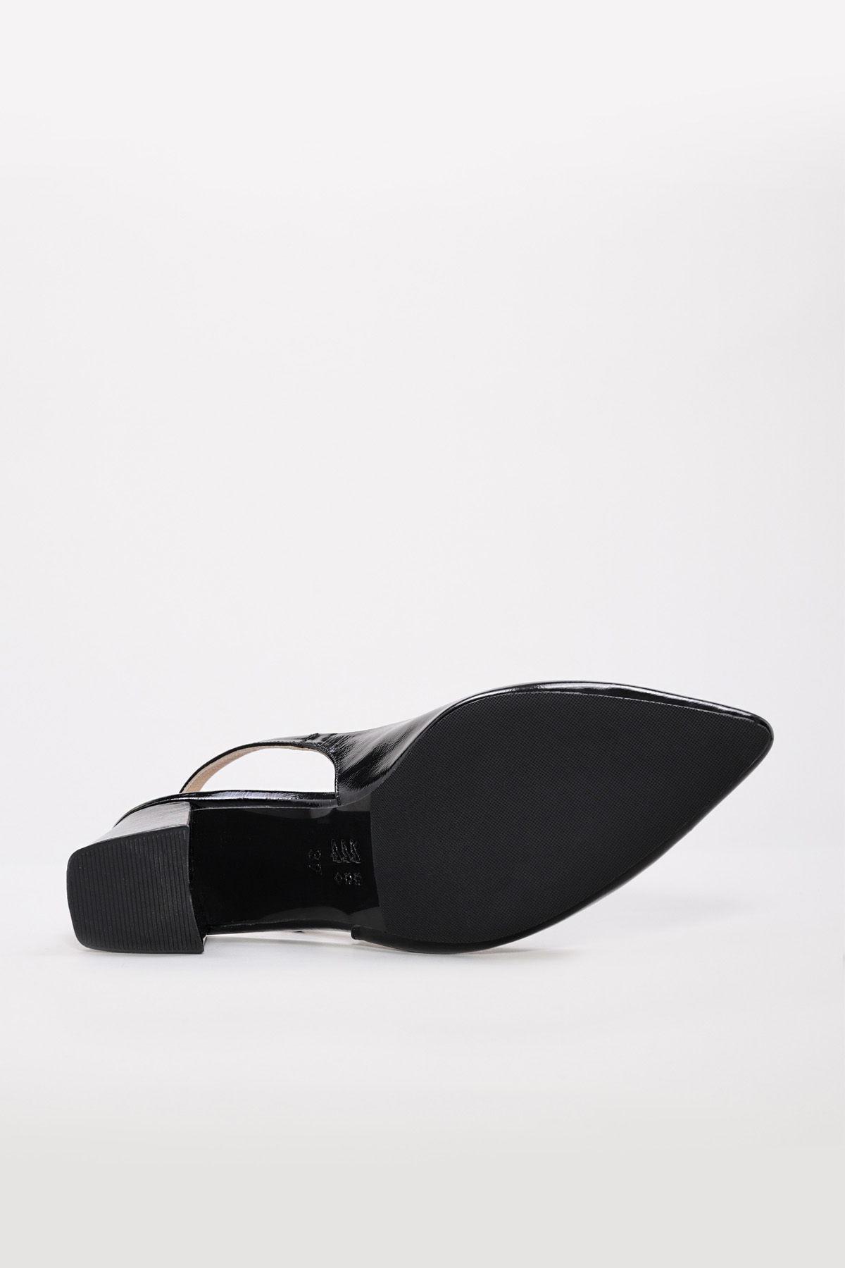 • Tugerdi Siyah Rugan Hakiki Deri Kemerli Jurdan Taban İnce Topuklu Kadın Ayakkabı TG0921526121387