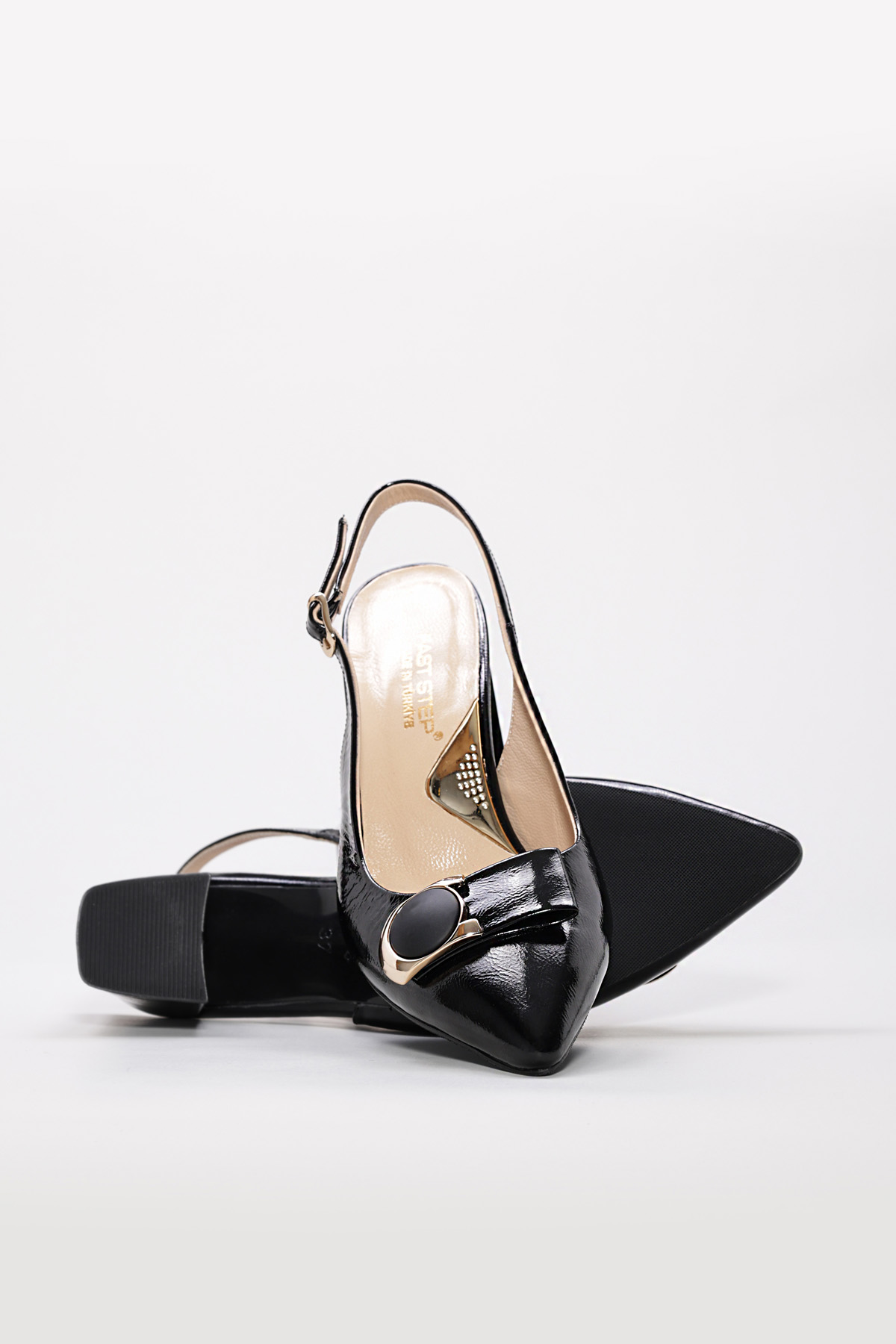 Tugerdi Siyah Rugan Hakiki Deri Kemerli Jurdan Taban İnce Topuklu Kadın Ayakkabı TG0921526121387